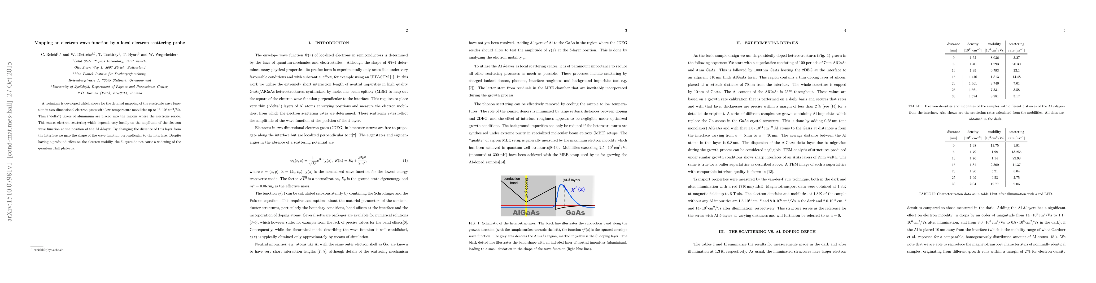 A technique is developed which allows for the detailed mapping of the electronic wave function in two-dimensional electron gases with low-temperature mobilities up to 15E6 cm^2/Vs. Thin ("delta") layers of aluminium are placed into the regions where the electrons reside. This causes electron scattering which depends very locally on the amplitude of the electron wave function at the position of the Al "delta"-layer. By changing the distance of this layer from the interface we map the shape of the wave function perpendicular to the interface. Despite having a profound effect on the electron mobiliy, the "delta"-layers do not cause a widening of the quantum Hall plateaus.