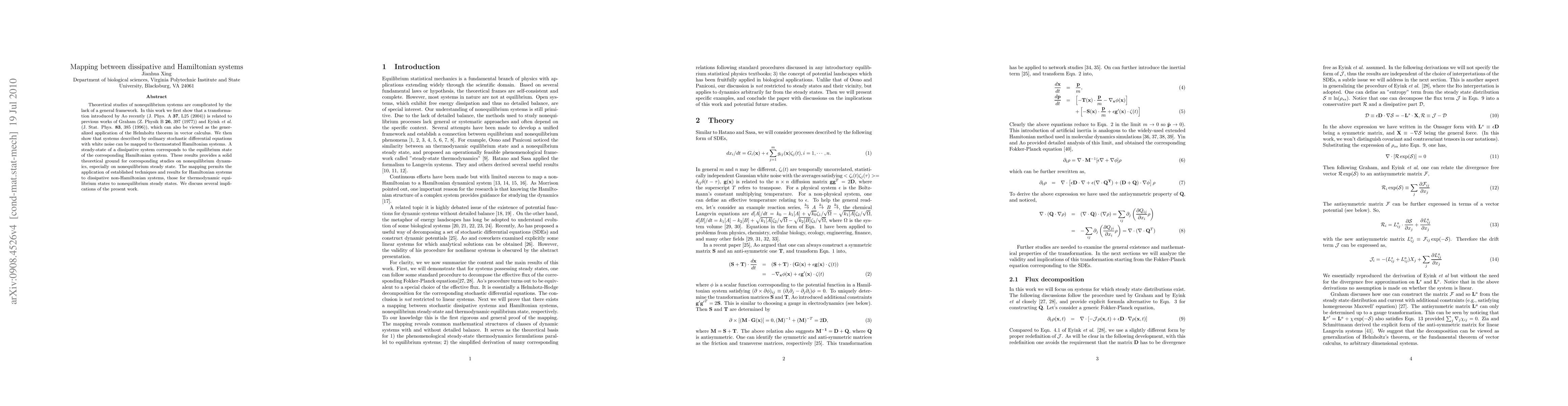 This paper establishes a theoretical framework linking dissipative and Hamiltonian systems through a transformation, showing that stochastic differential equations can be mapped to thermostated Hamiltonian systems, thereby extending established equilibrium techniques to nonequilibrium steady states. The results provide a robust foundation for studying nonequilibrium dynamics.