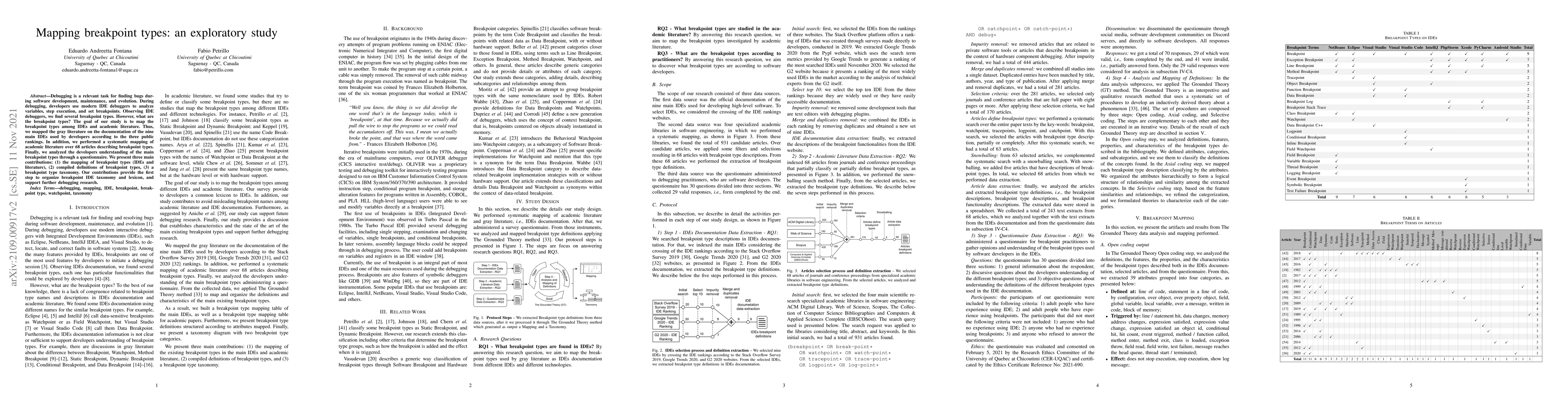 This study maps breakpoint types across major IDEs and academic literature to identify and categorize different breakpoint types, compiling definitions and presenting a taxonomy to support debugging research. The research involved analyzing IDE documentation, reviewing academic literature, and surveying developers.