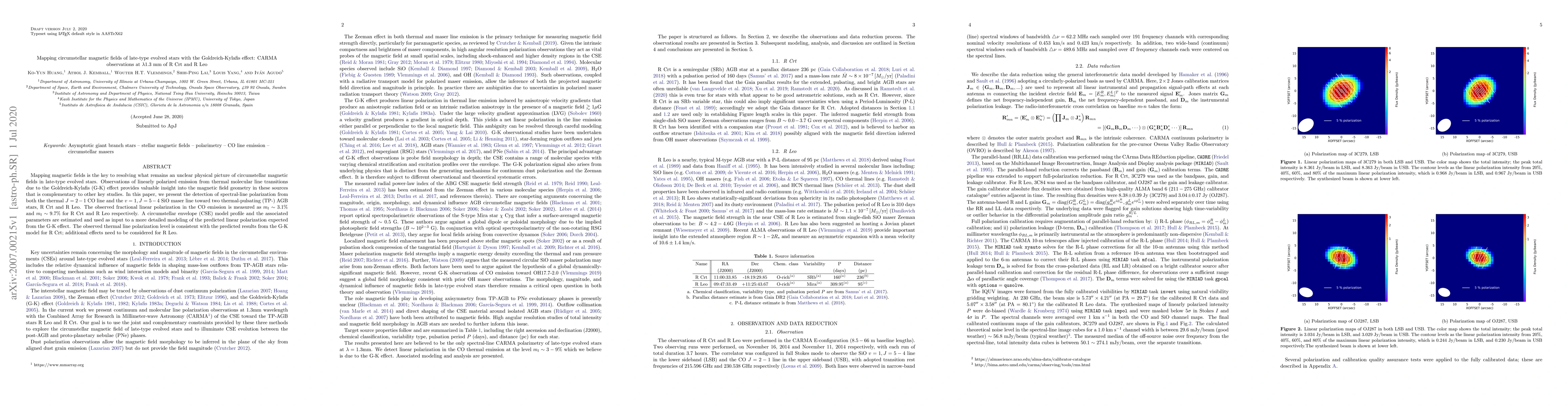 Mapping magnetic fields is the key to resolving what remains an unclear physical picture of circumstellar magnetic fields in late-type evolved stars. Observations of linearly polarized emission from thermal molecular line transitions due to the Goldreich-Kylafis (G-K) effect provides valuable insight into the magnetic field geometry in these sources that is complementary to other key studies. In this paper, we present the detection of spectral-line polarization from both the thermal $J=2-1$ CO line and the $v=1, J=5-4$ SiO maser line toward two thermal-pulsating (TP-) AGB stars, R Crt and R Leo. The observed fractional linear polarization in the CO emission is measured as $m_l\sim 3.1\%$ and $m_l\sim9.7\%$ for R Crt and R Leo respectively. A circumstellar envelope (CSE) model profile and the associated parameters are estimated and used as input to a more detailed modeling of the predicted linear polarization expected from the G-K effect. The observed thermal line polarization level is consistent with the predicted results from the G-K model for R Crt; additional effects need to be considered for R Leo.
