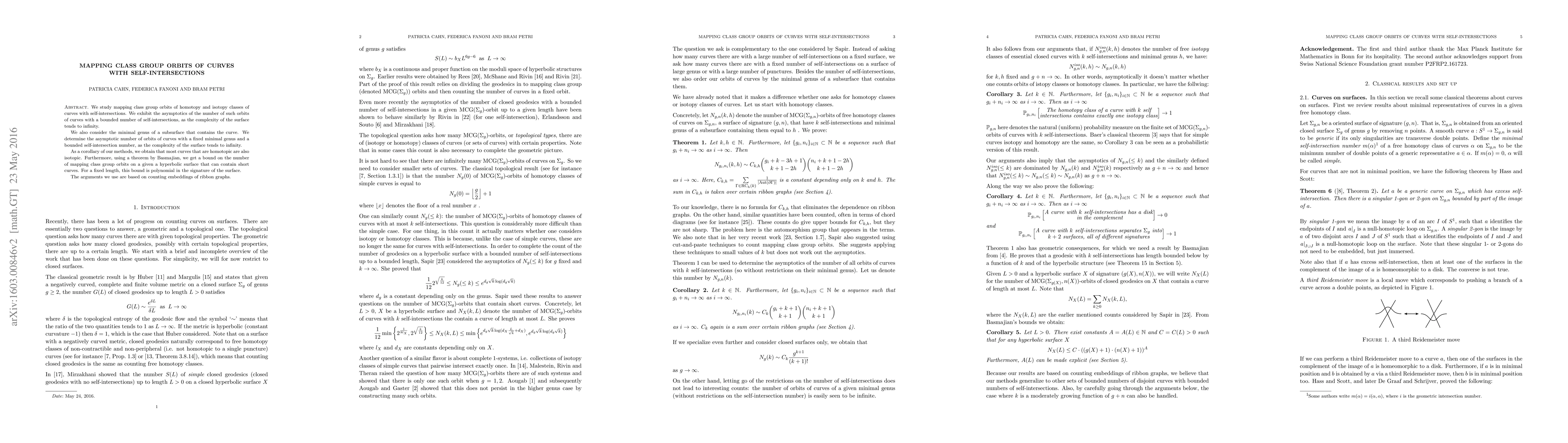 This research investigates the mapping class group orbits of curves with self-intersections on surfaces, determining the asymptotic number of these orbits as surface complexity increases. It also establishes that most homotopic curves are isotopic and provides a polynomial bound on the number of orbits containing short curves on hyperbolic surfaces, using ribbon graph embeddings.