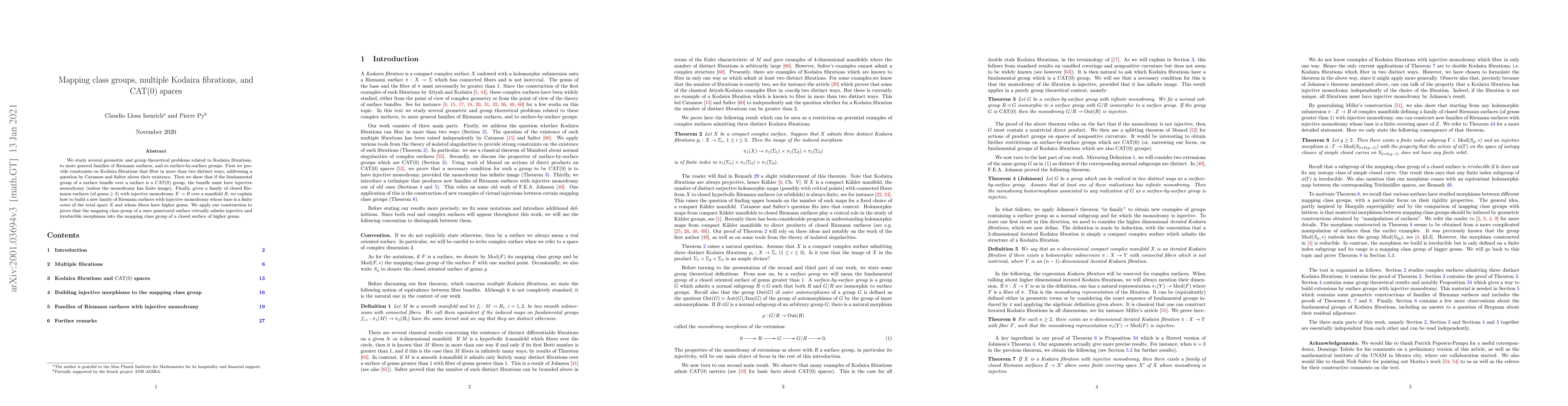 This paper explores geometric and group-theoretic aspects of Kodaira fibrations and surface-by-surface groups, proving constraints on fibrations with multiple distinct structures and demonstrating that ${\rm CAT}(0)$ groups in surface bundles require injective monodromy. It also constructs new families of higher genus Riemann surfaces and shows the mapping class group of a punctured surface virtually embeds into the mapping class group of a higher genus closed surface.