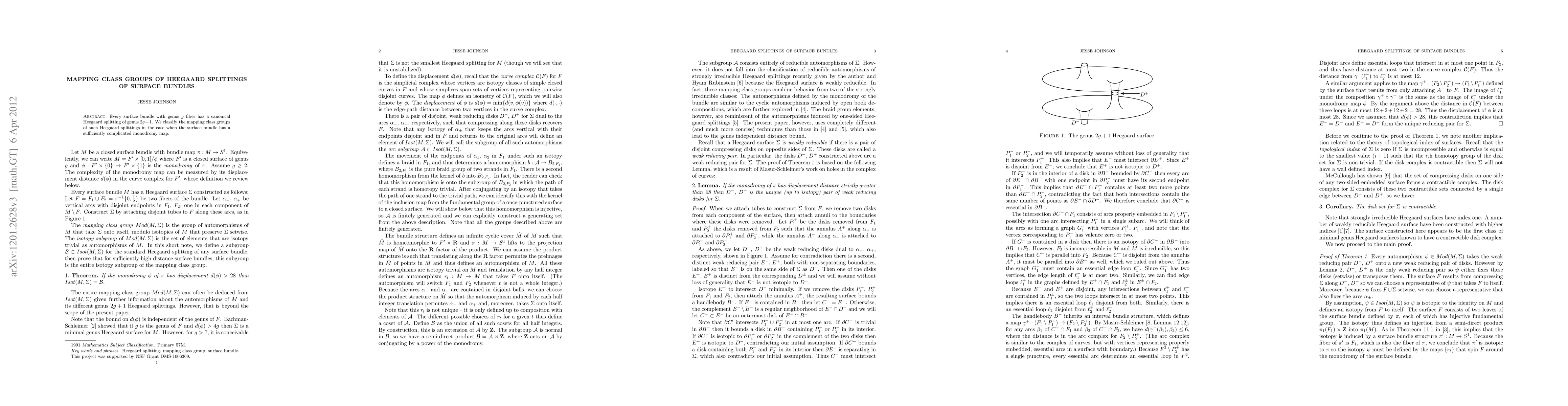 The paper introduces a method for classifying mapping class groups of Heegaard splittings in surface bundles using curve complexes and displacement concepts, providing a genus-independent distance bound.
