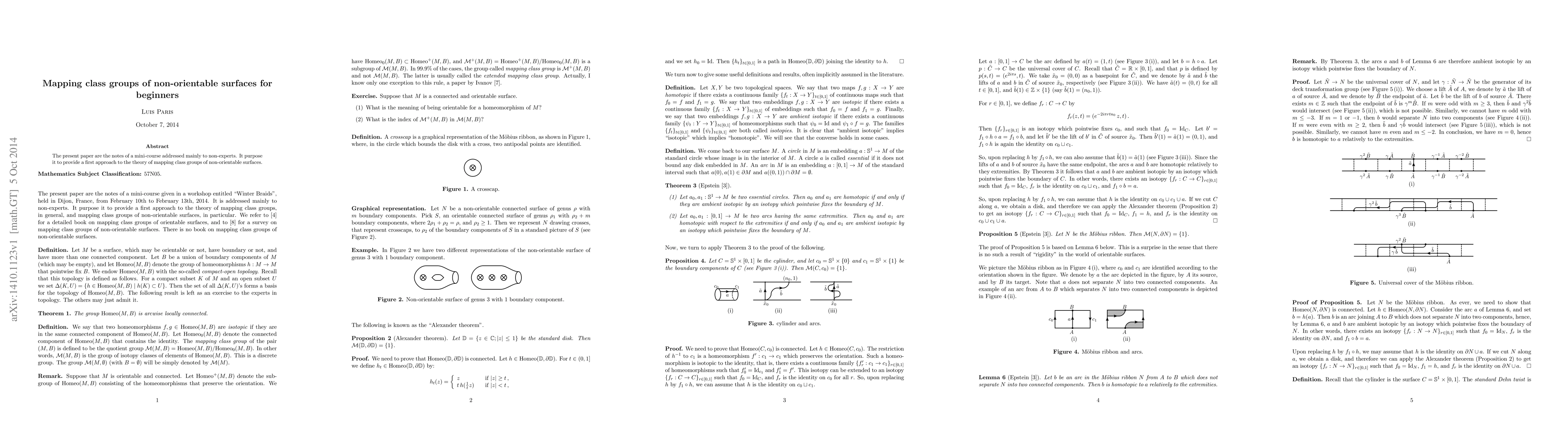 The present paper are the notes of a mini-course addressed mainly to non-experts. It purpose it to provide a first approach to the theory of mapping class groups of non-orientable surfaces.