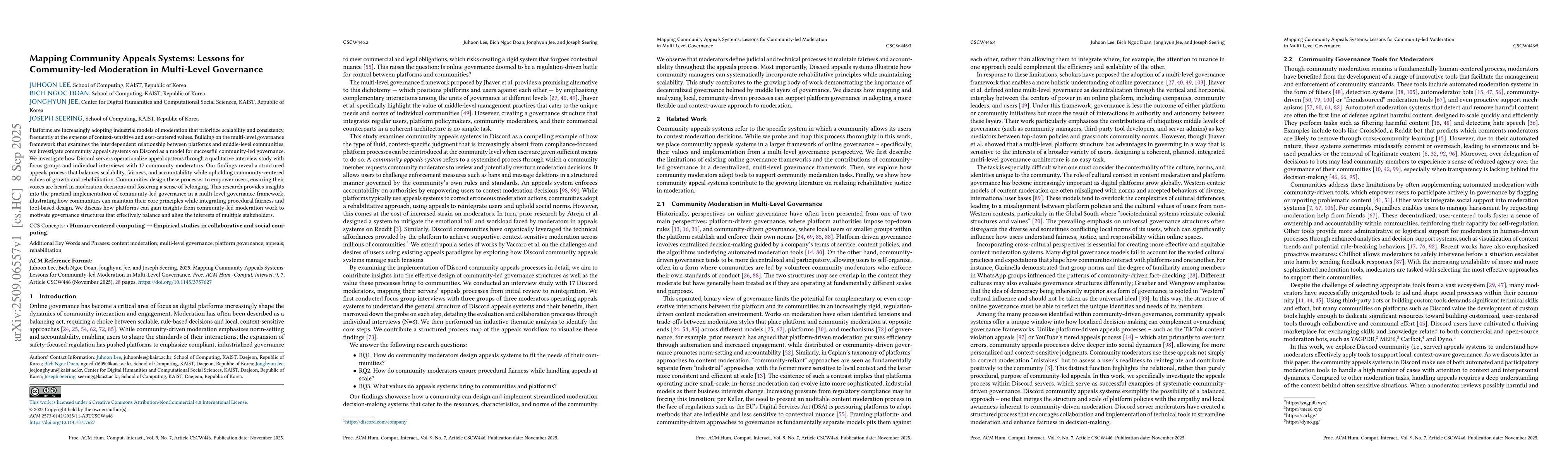 Platforms are increasingly adopting industrial models of moderation that prioritize scalability and consistency, frequently at the expense of context-sensitive and user-centered values. Building on the multi-level governance framework that examines the interdependent relationship between platforms and middle-level communities, we investigate community appeals systems on Discord as a model for successful community-led governance. We investigate how Discord servers operationalize appeal systems through a qualitative interview study with focus groups and individual interviews with 17 community moderators. Our findings reveal a structured appeals process that balances scalability, fairness, and accountability while upholding community-centered values of growth and rehabilitation. Communities design these processes to empower users, ensuring their voices are heard in moderation decisions and fostering a sense of belonging. This research provides insights into the practical implementation of community-led governance in a multi-level governance framework, illustrating how communities can maintain their core principles while integrating procedural fairness and tool-based design. We discuss how platforms can gain insights from community-led moderation work to motivate governance structures that effectively balance and align the interests of multiple stakeholders.