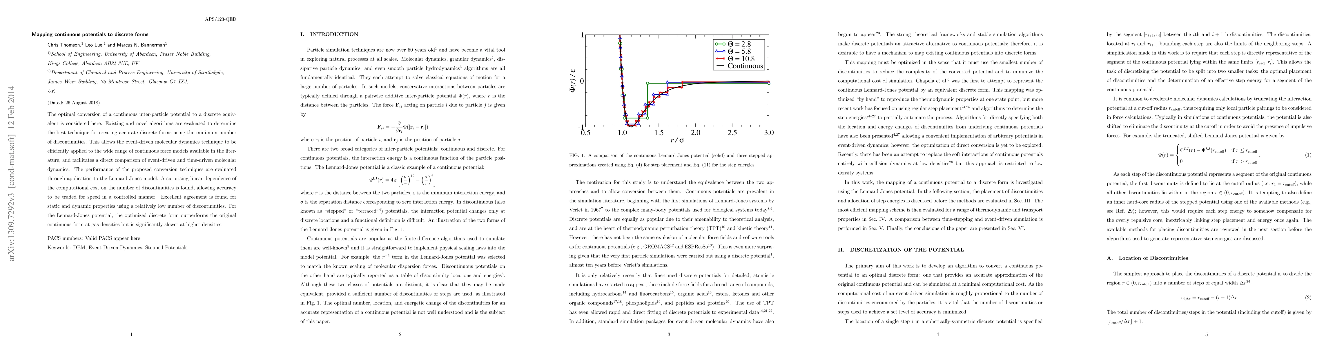 The optimal conversion of a continuous inter-particle potential to a discrete equivalent is considered here. Existing and novel algorithms are evaluated to determine the best technique for creating accurate discrete forms using the minimum number of discontinuities. This allows the event-driven molecular dynamics technique to be efficiently applied to the wide range of continuous force models available in the literature, and facilitates a direct comparison of event-driven and time-driven molecular dynamics. The performance of the proposed conversion techniques are evaluated through application to the Lennard-Jones model. A surprising linear dependence of the computational cost on the number of discontinuities is found, allowing accuracy to be traded for speed in a controlled manner. Excellent agreement is found for static and dynamic properties using a relatively low number of discontinuities. For the Lennard-Jones potential, the optimized discrete form outperforms the original continuous form at gas densities but is significantly slower at higher densities.
