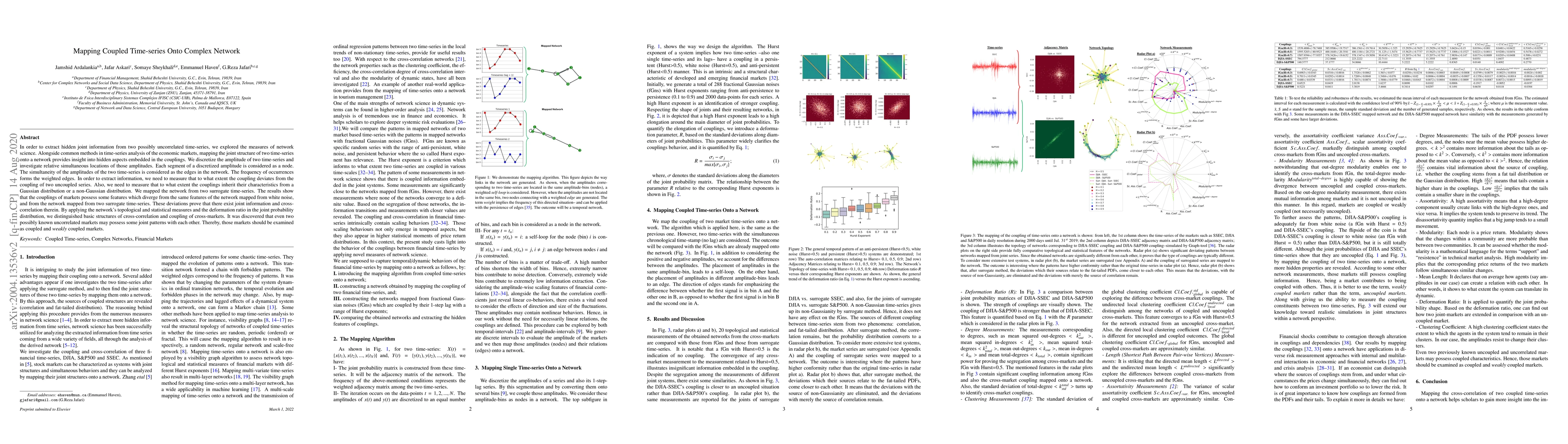 This paper explores the use of network science to uncover hidden joint information from two potentially uncorrelated time-series by mapping their joint structure onto a complex network. The study reveals that even seemingly uncorrelated markets exhibit joint patterns and cross-correlation, indicating they should be considered as coupled markets.