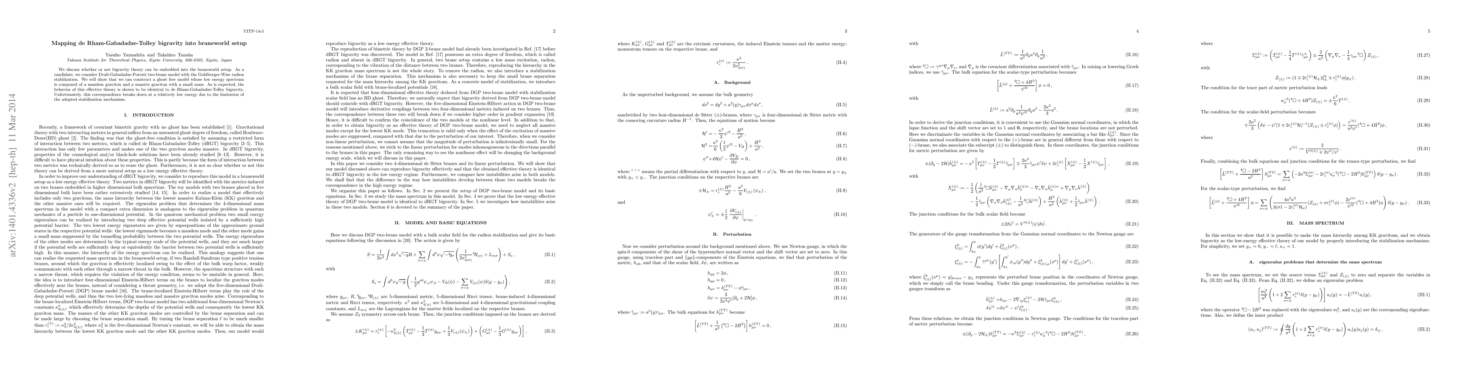We discuss whether or not bigravity theory can be embedded into the braneworld setup. As a candidate, we consider Dvali-Gabadadze-Porrati two-brane model with the Goldberger-Wise radion stabilization. We will show that we can construct a ghost free model whose low energy spectrum is composed of a massless graviton and a massive graviton with a small mass. As is expected, the behavior of this effective theory is shown to be identical to de Rham-Gabadadze-Tolley bigravity. Unfortunately, this correspondence breaks down at a relatively low energy due to the limitation of the adopted stabilization mechanism.