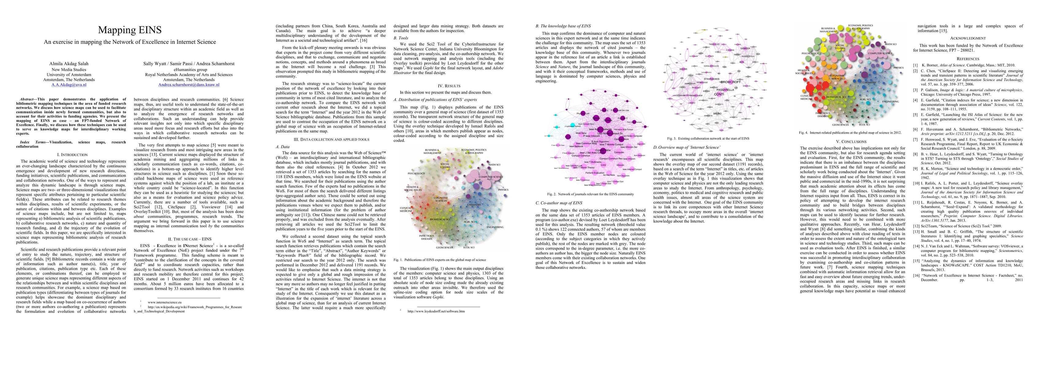 This paper applies bibliometric mapping to the EINS Network of Excellence, showcasing how science maps enhance communication within research communities and provide accountability to funding agencies, while also serving as knowledge maps for interdisciplinary experts.