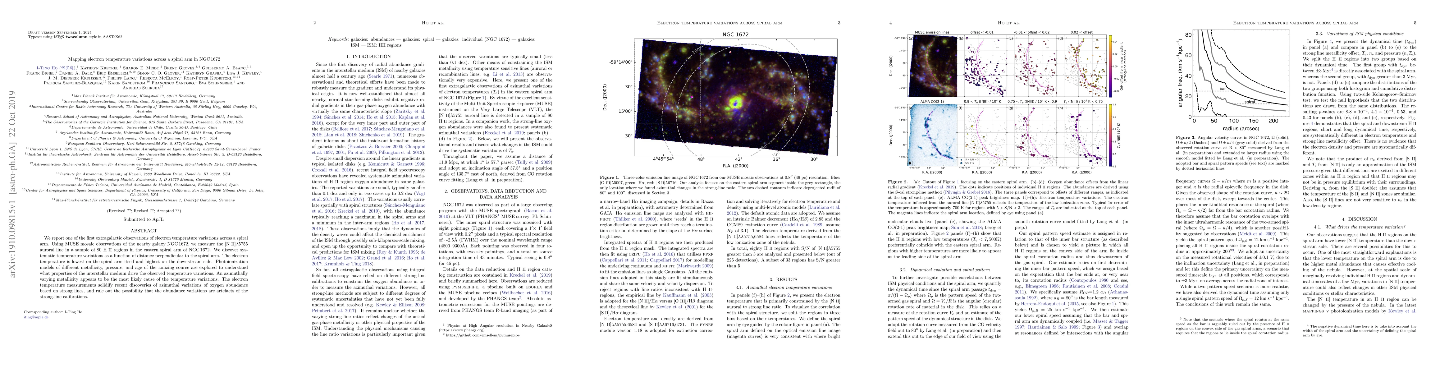 Researchers observed electron temperature variations across a spiral arm in NGC 1672, finding lowest temperatures on the arm itself and highest on downstream sides. Azimuthally varying metallicity appears to be the cause of these temperature variations.