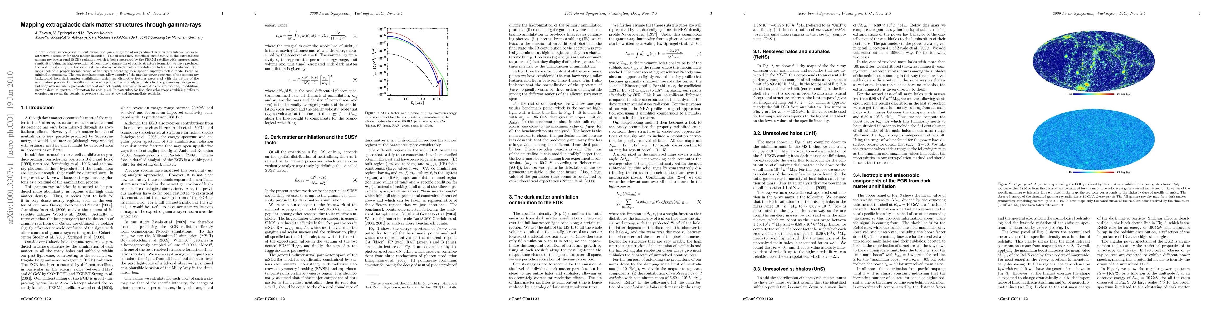 If dark matter is composed of neutralinos, the gamma-ray radiation produced in their annihilation offers an attractive possibility for dark matter detection. This process may contribute significantly to the extragalactic gamma-ray background (EGB) radiation, which is being measured by the FERMI satellite with unprecedented sensitivity. Using the high-resolution Millennium-II simulation of cosmic structure formation we have produced the first full-sky maps of the expected contribution of dark matter annihilation to the EGB radiation. Our maps include a proper normalization of the signal according to a specific supersymmetric model based on minimal supergravity. The new simulated maps allow a study of the angular power spectrum of the gamma-ray background from dark matter annihilation, which has distinctive features associated with the nature of the annihilation process. Our results are in broad agreement with analytic models for the gamma-ray background, but they also include higher-order correlations not readily accessible in analytic calculations and, in addition, provide detailed spectral information for each pixel. In particular, we find that color maps combining different energies can reveal the cosmic large-scale structure at low and intermediate redshifts.