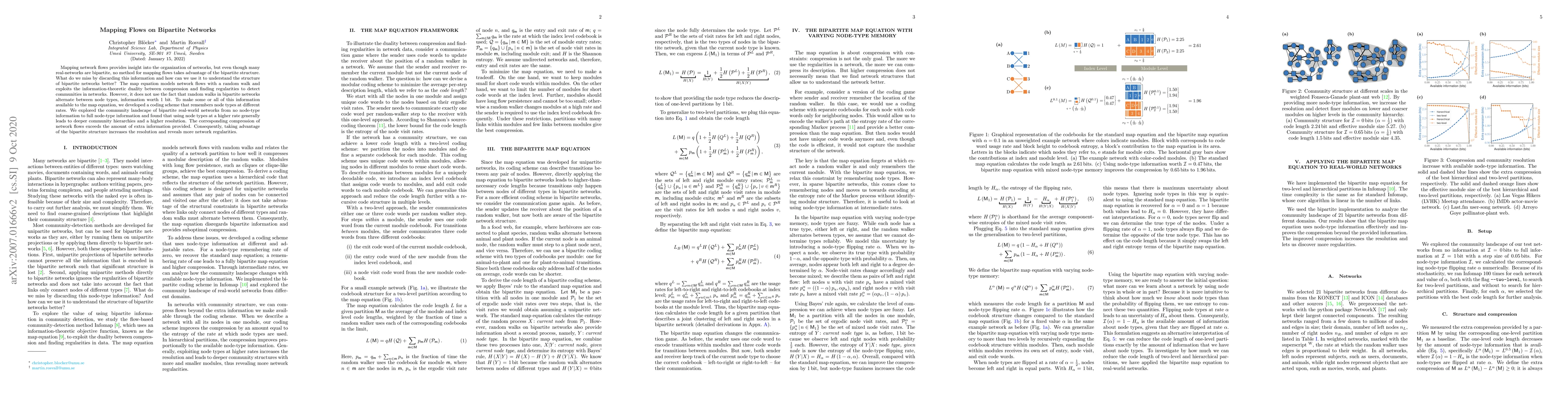Mapping network flows provides insight into the organization of networks, but even though many real-networks are bipartite, no method for mapping flows takes advantage of the bipartite structure. What do we miss by discarding this information and how can we use it to understand the structure of bipartite networks better? The map equation models network flows with a random walk and exploits the information-theoretic duality between compression and finding regularities to detect communities in networks. However, it does not use the fact that random walks in bipartite networks alternate between node types, information worth 1 bit. To make some or all of this information available to the map equation, we developed a coding scheme that remembers node types at different rates. We explored the community landscape of bipartite real-world networks from no node-type information to full node-type information and found that using node types at a higher rate generally leads to deeper community hierarchies and a higher resolution. The corresponding compression of network flows exceeds the amount of extra information provided. Consequently, taking advantage of the bipartite structure increases the resolution and reveals more network regularities.