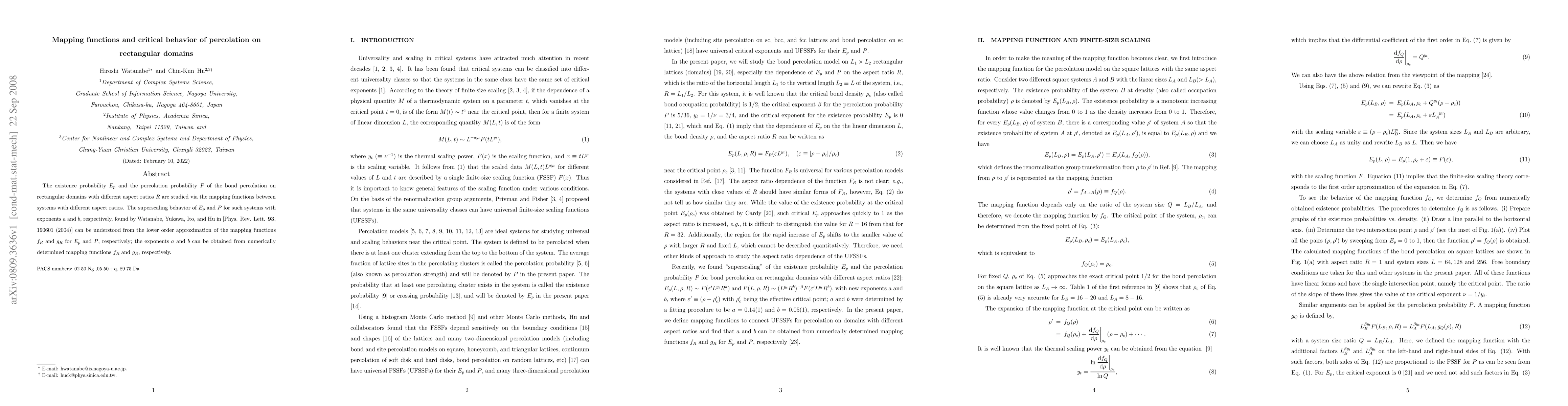 This paper investigates the bond percolation probability on rectangular domains with varying aspect ratios, using mapping functions to relate systems of different sizes. It finds the superscaling behavior of percolation probabilities through the lower order approximations of these mapping functions, thereby determining the critical exponents.