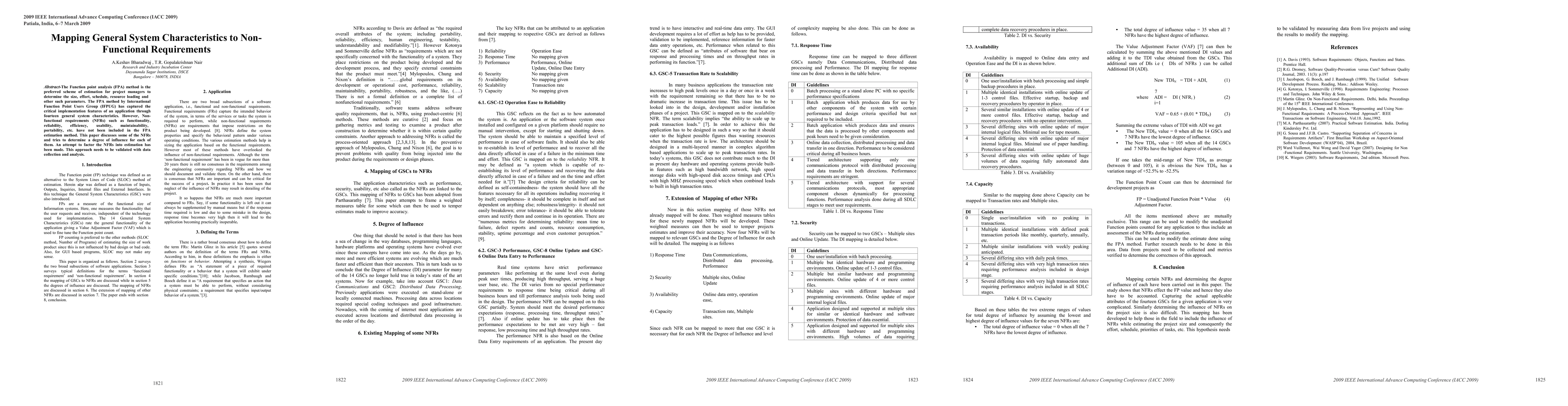 The Function point analysis (FPA) method is the preferred scheme of estimation for project managers to determine the size, effort, schedule, resource loading and other such parameters. The FPA method by International Function Point Users Group (IFPUG) has captured the critical implementation features of an application through fourteen general system characteristics. However, Non- functional requirements (NFRs) such as functionality, reliability, efficiency, usability, maintainability, portability, etc. have not been included in the FPA estimation method. This paper discusses some of the NFRs and tries to determine a degree of influence for each of them. An attempt to factor the NFRs into estimation has been made. This approach needs to be validated with data collection and analysis.