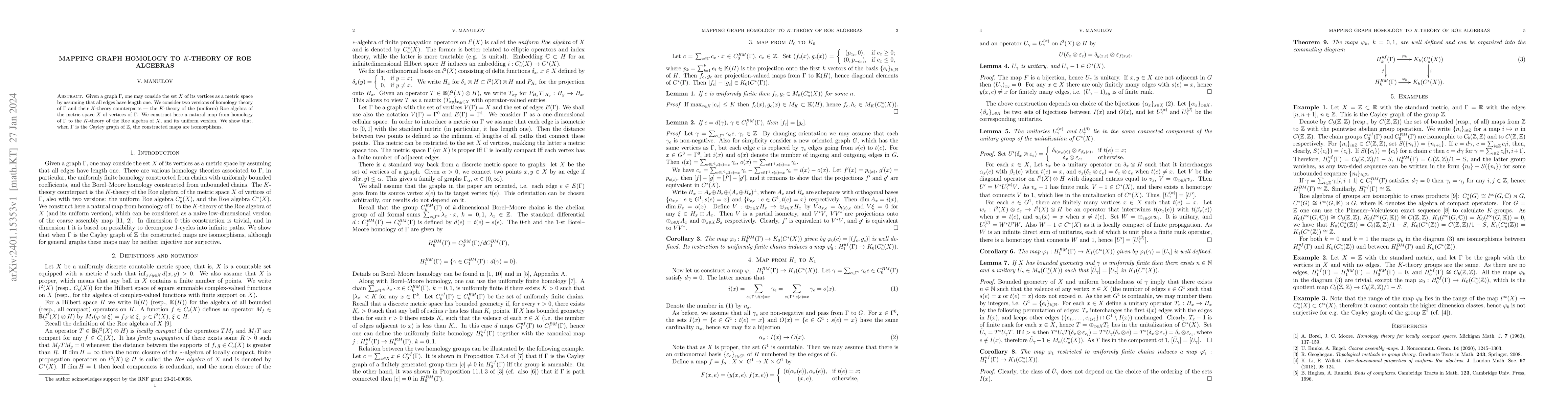 This paper constructs a natural map from the homology of a graph to the $K$-theory of its Roe algebra, demonstrating that for the Cayley graph of $\mathbb{Z}$, this map is an isomorphism. The study bridges graph homology and algebraic $K$-theory.