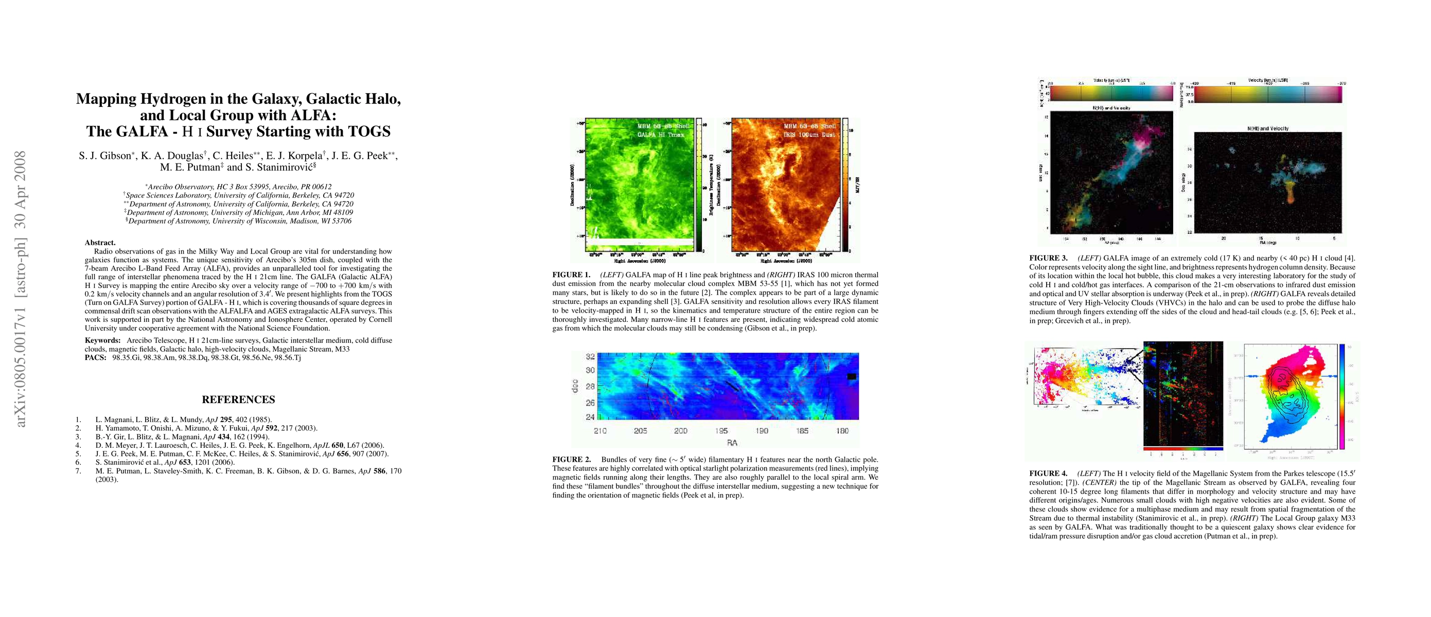 This paper details the GALFA-HI Survey's use of Arecibo's ALFA to map hydrogen in the Milky Way, its halo, and the Local Group, providing insights into galactic systems through the HI 21cm line. The TOGS portion of the survey covers thousands of square degrees using commensal drift scans.