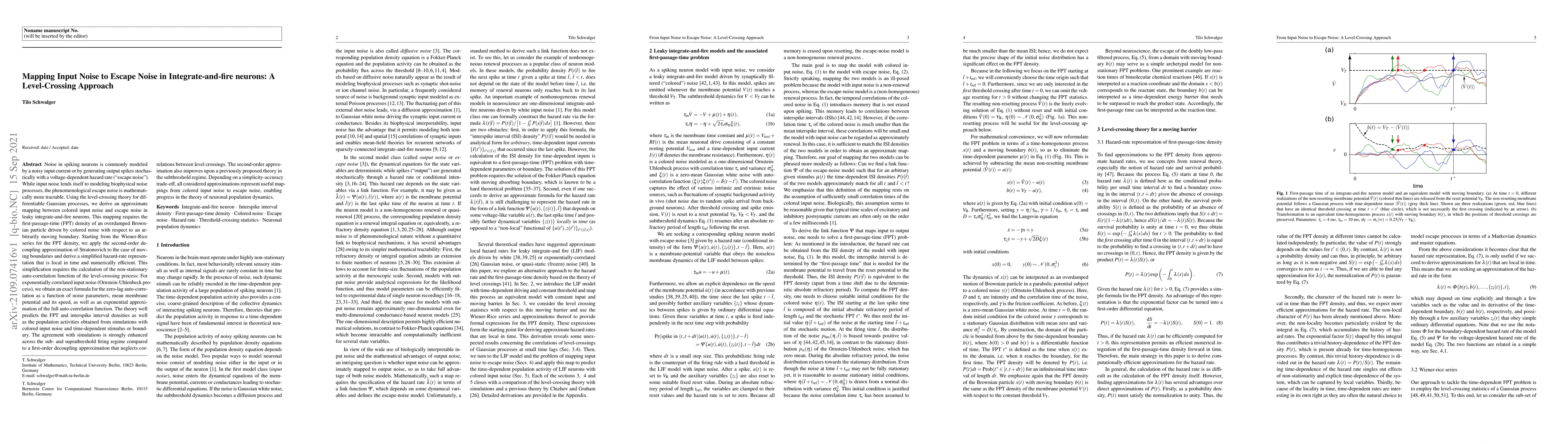 Researchers developed a mapping method to convert colored input noise in neurons into escape noise, which is mathematically more tractable. The method uses level-crossing theory and provides accurate predictions for neuronal firing behavior and population activities.