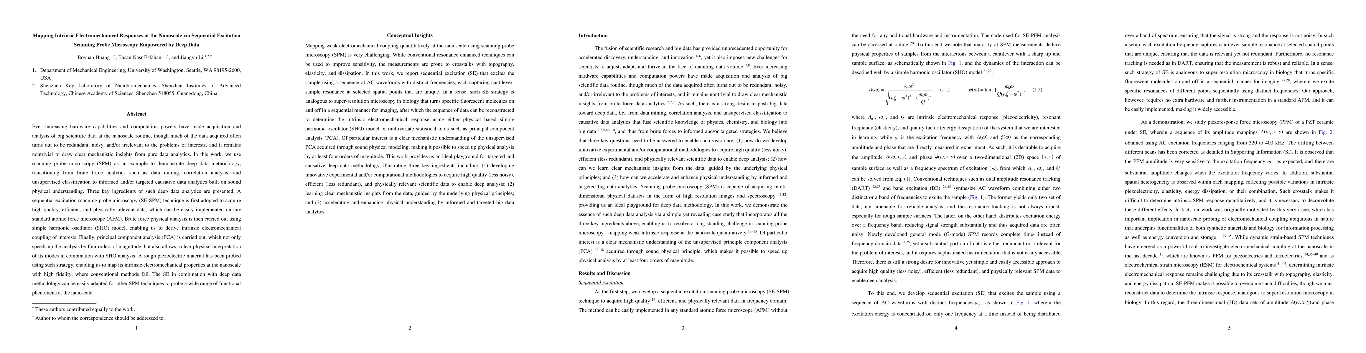 This paper introduces a deep data methodology using sequential excitation scanning probe microscopy (SE-SPM) to efficiently acquire and analyze nanoscale electromechanical data. The approach combines SE-SPM, simple harmonic oscillator modeling, and principal component analysis to derive intrinsic electromechanical coupling, enabling high-fidelity mapping of nanoscale properties in piezoelectric materials.