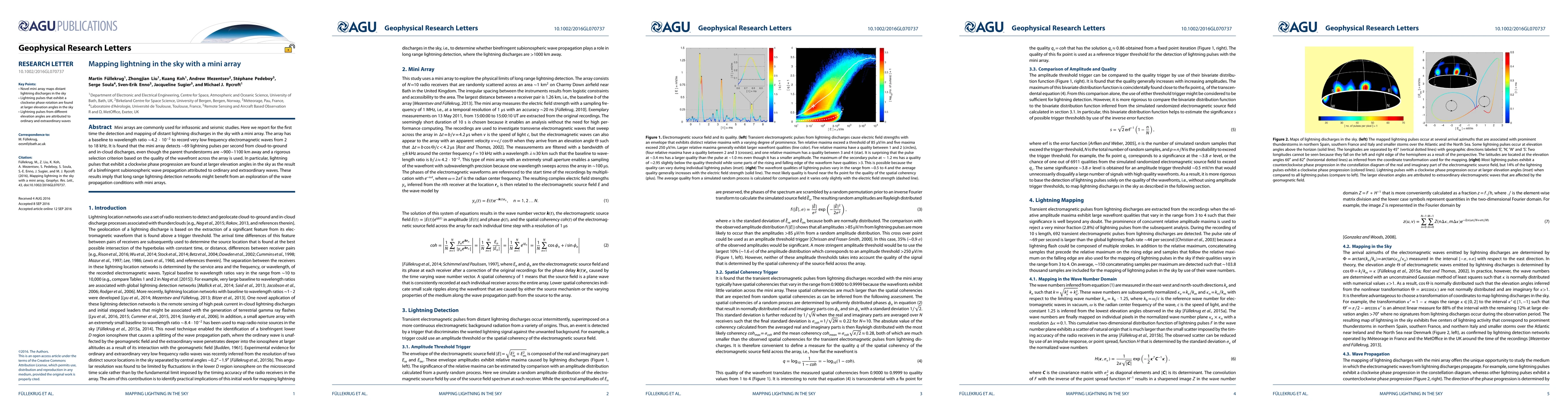 Mini arrays are commonly used for infrasonic and seismic studies. Here we report for the first time the detection and mapping of distant lightning discharges in the sky with a mini array. The array has a baseline to wavelength ratio $\sim$4.2 ${ \cdot}$ $10^{-2}$ to record very low frequency electromagnetic waves from 2 to 18 kHz. It is found that the mini array detects $\sim$69 lightning pulses per second from cloud-to-ground and in-cloud discharges, even though the parent thunderstorms are $\sim$900-1100 km away and a rigorous selection criterion based on the quality of the wavefront across the array is used. In particular, lightning pulses that exhibit a clockwise phase progression are found at larger elevation angles in the sky as the result of a birefringent subionospheric wave propagation attributed to ordinary and extraordinary waves. These results imply that long range lightning detection networks might benefit from an exploration of the wave propagation conditions with mini arrays.