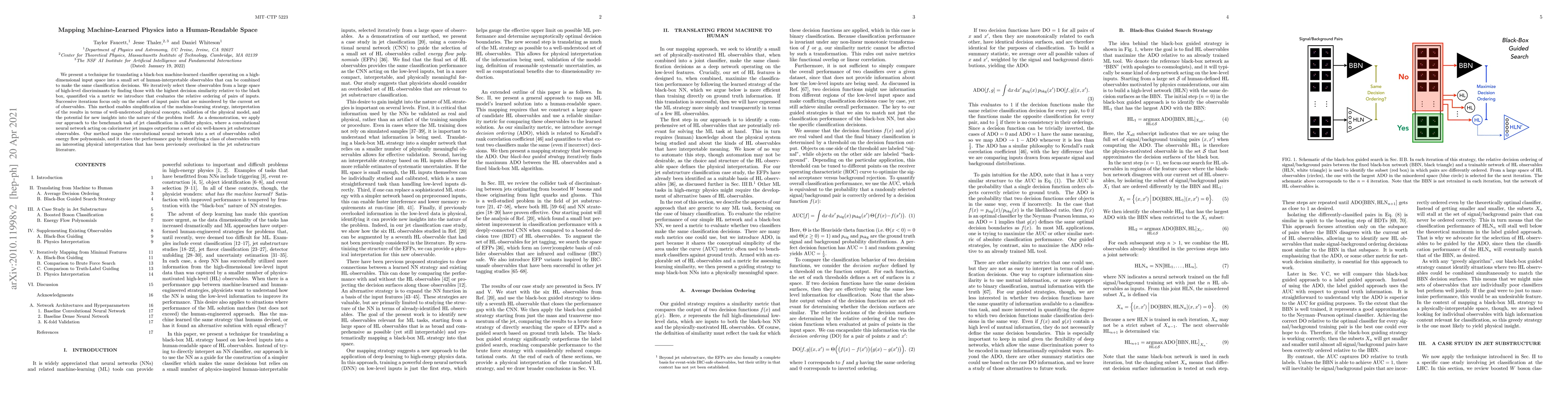 We present a technique for translating a black-box machine-learned classifier operating on a high-dimensional input space into a small set of human-interpretable observables that can be combined to make the same classification decisions. We iteratively select these observables from a large space of high-level discriminants by finding those with the highest decision similarity relative to the black box, quantified via a metric we introduce that evaluates the relative ordering of pairs of inputs. Successive iterations focus only on the subset of input pairs that are misordered by the current set of observables. This method enables simplification of the machine-learning strategy, interpretation of the results in terms of well-understood physical concepts, validation of the physical model, and the potential for new insights into the nature of the problem itself. As a demonstration, we apply our approach to the benchmark task of jet classification in collider physics, where a convolutional neural network acting on calorimeter jet images outperforms a set of six well-known jet substructure observables. Our method maps the convolutional neural network into a set of observables called energy flow polynomials, and it closes the performance gap by identifying a class of observables with an interesting physical interpretation that has been previously overlooked in the jet substructure literature.