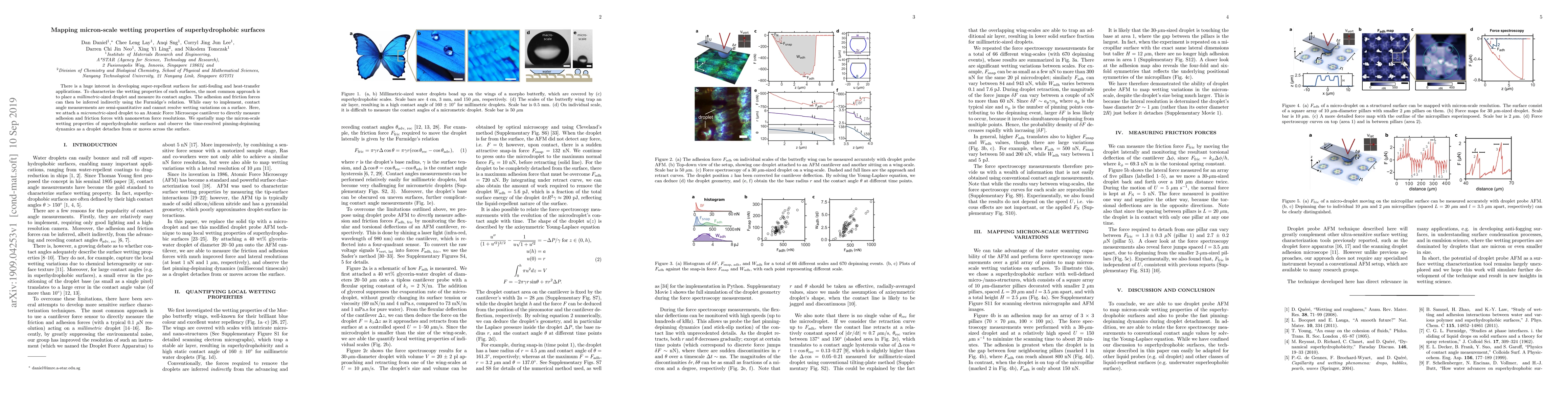 The development and implementation of a droplet probe AFM technique for mapping micron-scale wetting properties and measuring adhesion and friction forces on superhydrophobic surfaces with high precision.