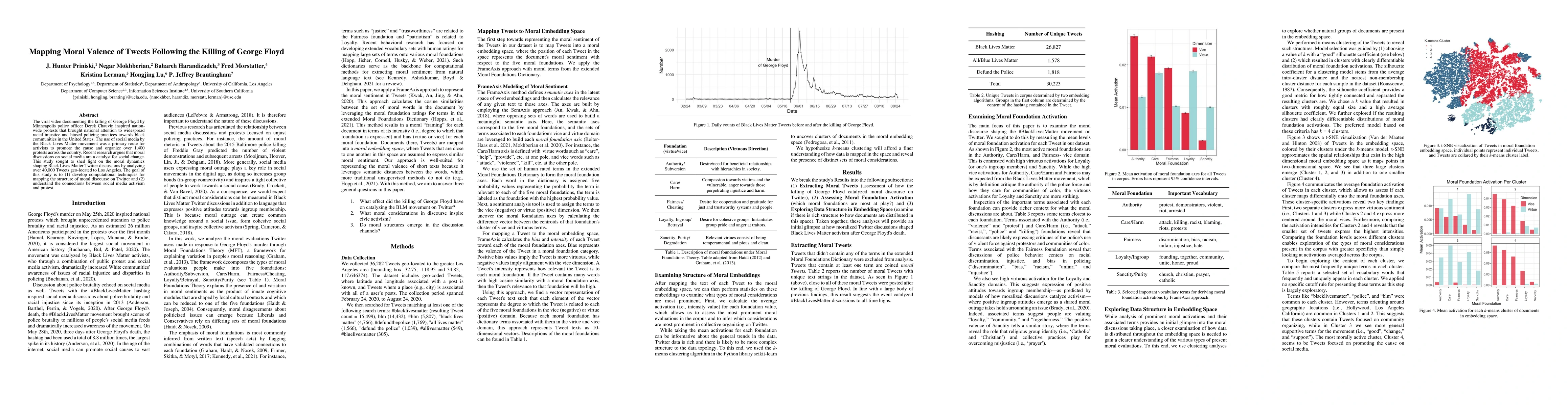 The viral video documenting the killing of George Floyd by Minneapolis police officer Derek Chauvin inspired nation-wide protests that brought national attention to widespread racial injustice and biased policing practices towards black communities in the United States. The use of social media by the Black Lives Matter movement was a primary route for activists to promote the cause and organize over 1,400 protests across the country. Recent research argues that moral discussions on social media are a catalyst for social change. This study sought to shed light on the moral dynamics shaping Black Lives Matter Twitter discussions by analyzing over 40,000 Tweets geo-located to Los Angeles. The goal of this study is to (1) develop computational techniques for mapping the structure of moral discourse on Twitter and (2) understand the connections between social media activism and protest.