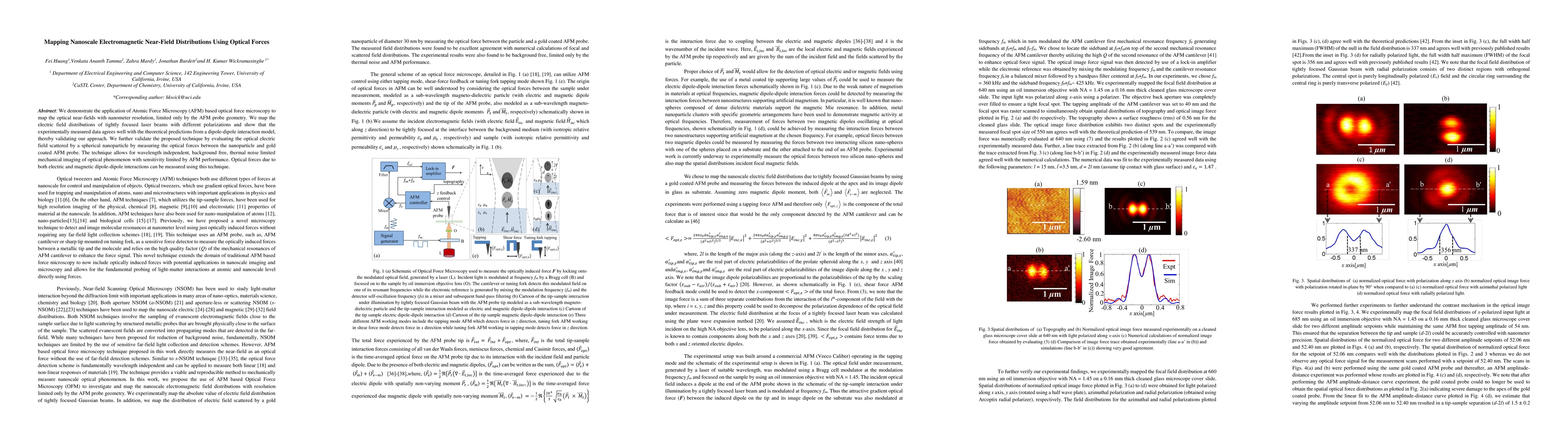 This paper presents an AFM-based optical force microscopy technique to map nanoscale electromagnetic near-fields with nanometer resolution, validated by comparing experimental results with theoretical dipole-dipole interaction models. The method also measures optical forces from spherical nanoparticles, demonstrating its ability to detect electric and magnetic dipole-dipole interactions.