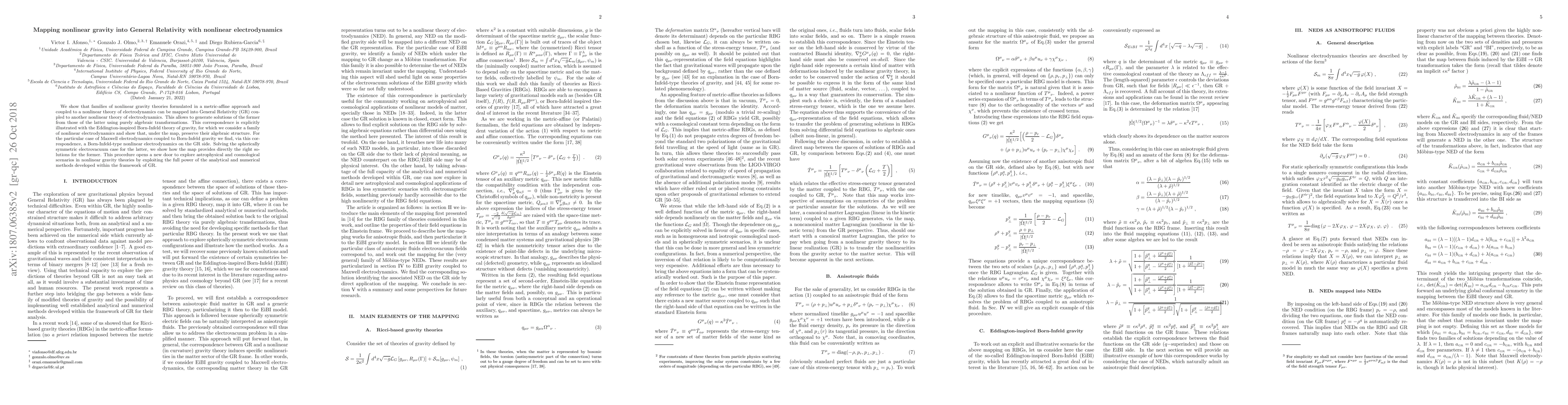 This paper demonstrates a mapping technique that translates nonlinear gravity theories into General Relativity (GR) by coupling them with nonlinear electrodynamics, allowing solutions from GR to generate corresponding solutions in nonlinear gravity. This method is exemplified using the Eddington-inspired Born-Infeld gravity and various nonlinear electrodynamics, showing the preservation of algebraic structures and providing solutions for astrophysical scenarios.