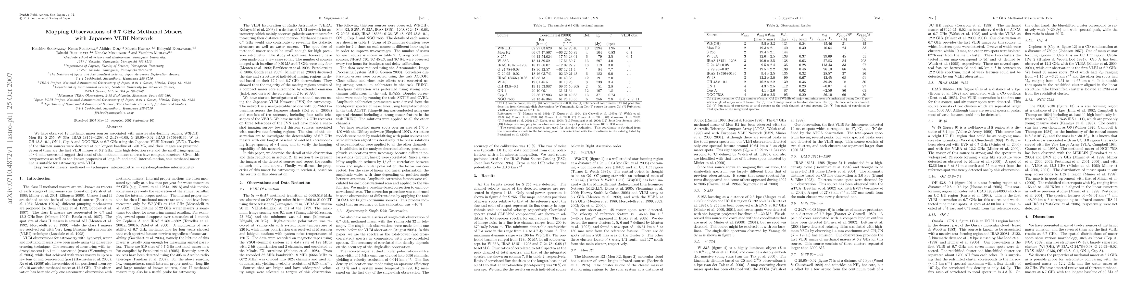 This study uses the Japanese VLBI Network to observe 13 methanol maser sources at 6.7 GHz, detecting 12 out of 13 with high resolution, indicating their compact structures. The findings suggest methanol maser lines are suitable for astrometric studies with VLBI.