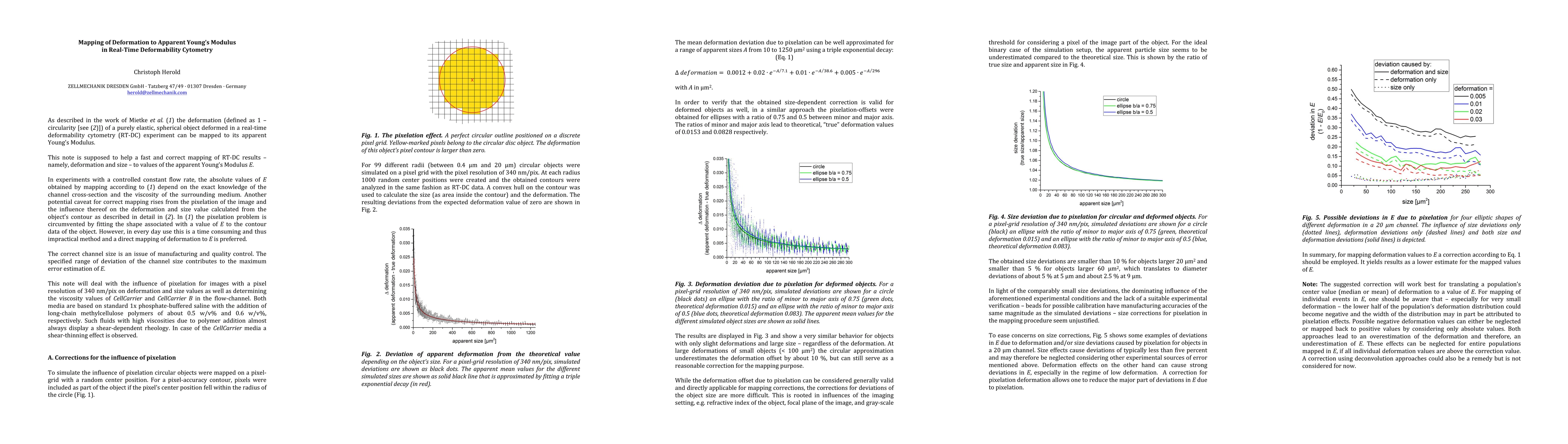 As described in the work of Mietke et al. (1) the deformation (defined as 1 - circularity [see (2)]) of a purely elastic, spherical object deformed in a real-time deformability cytometry (RT-DC) experiment can be mapped to its apparent Young's Modulus. This note is supposed to help a fast and correct mapping of RT-DC results - namely, deformation and size - to values of the apparent Young's Modulus E.