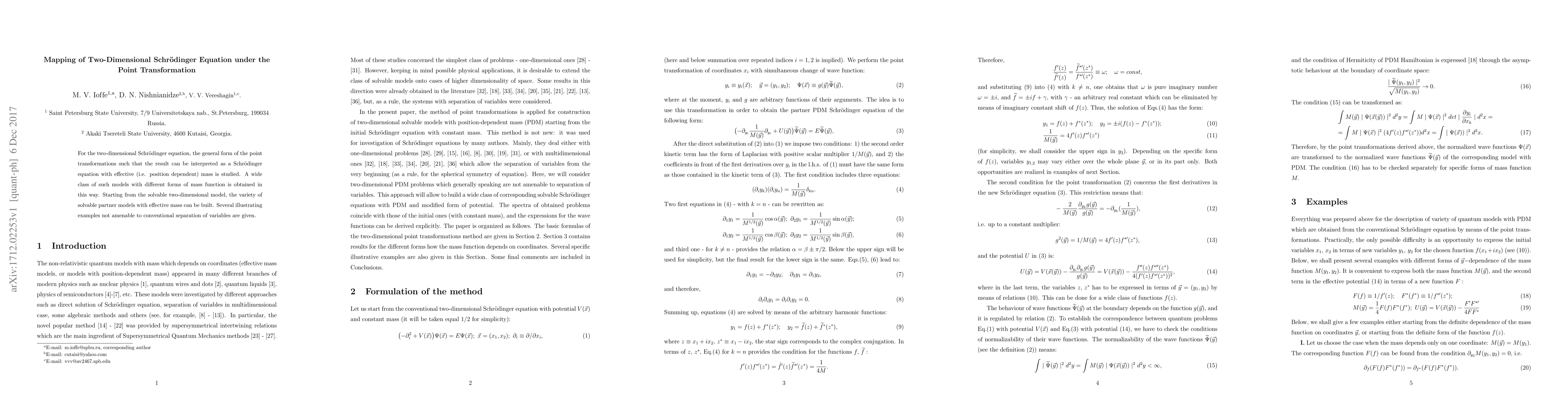This paper explores point transformations of the two-dimensional Schrödinger equation to derive models with effective (position-dependent) mass. It identifies a broad class of solvable partner models and provides examples that cannot be solved via conventional separation of variables.