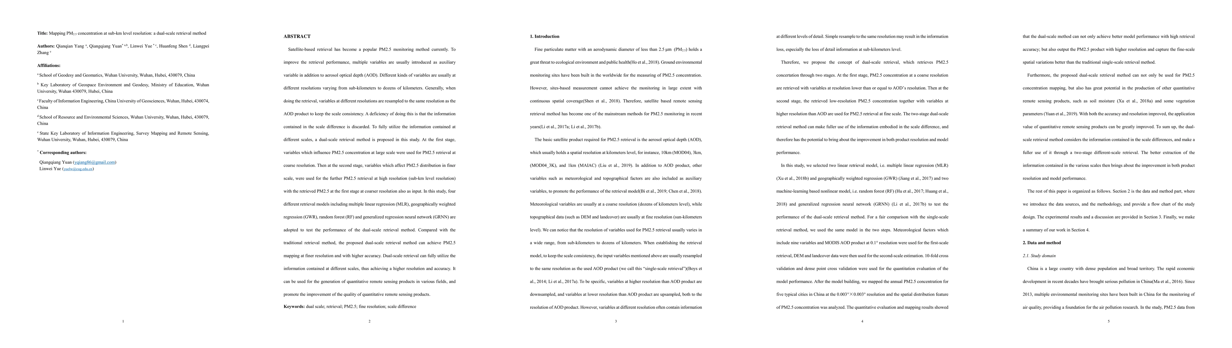 This study proposes a dual-scale retrieval method to map PM2.5 concentration at finer resolution with higher accuracy, utilizing information from both coarse and fine scales.