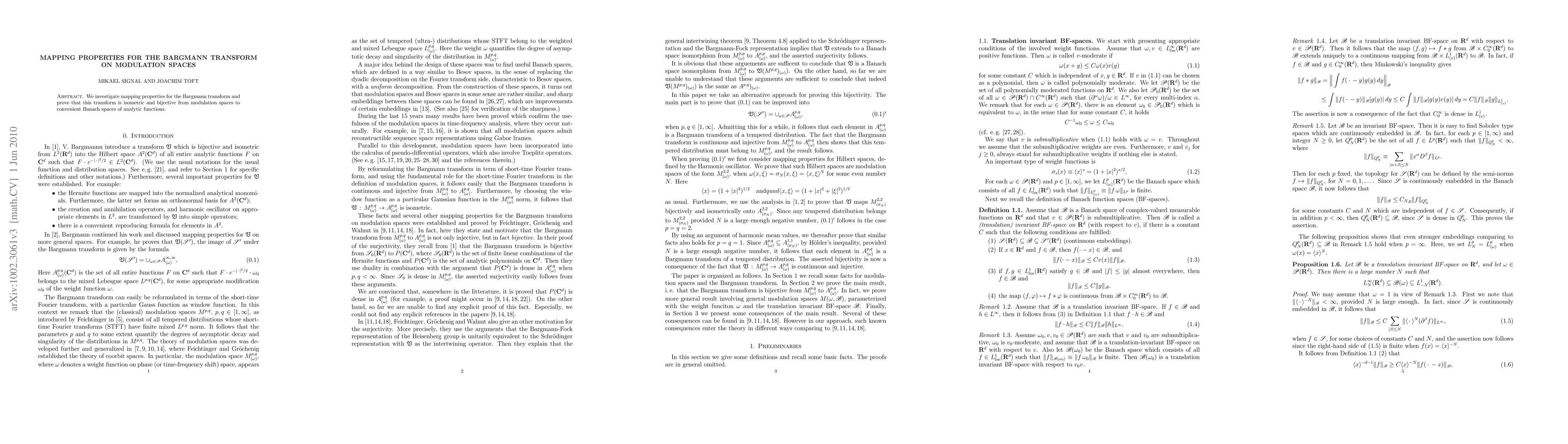 Summary: This paper proves that the Bargmann transform is an isometric and bijective mapping from modulation spaces to Banach spaces of analytic functions, establishing its utility in analyzing such functions.