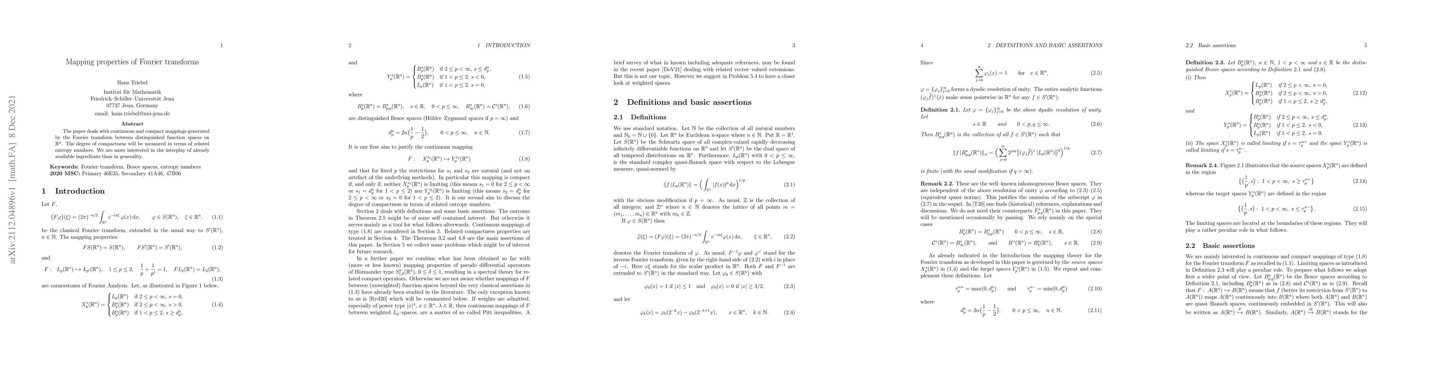 This paper investigates the properties of Fourier transforms between function spaces on $ar{R}^n$, focusing on compact mappings measured by entropy numbers.