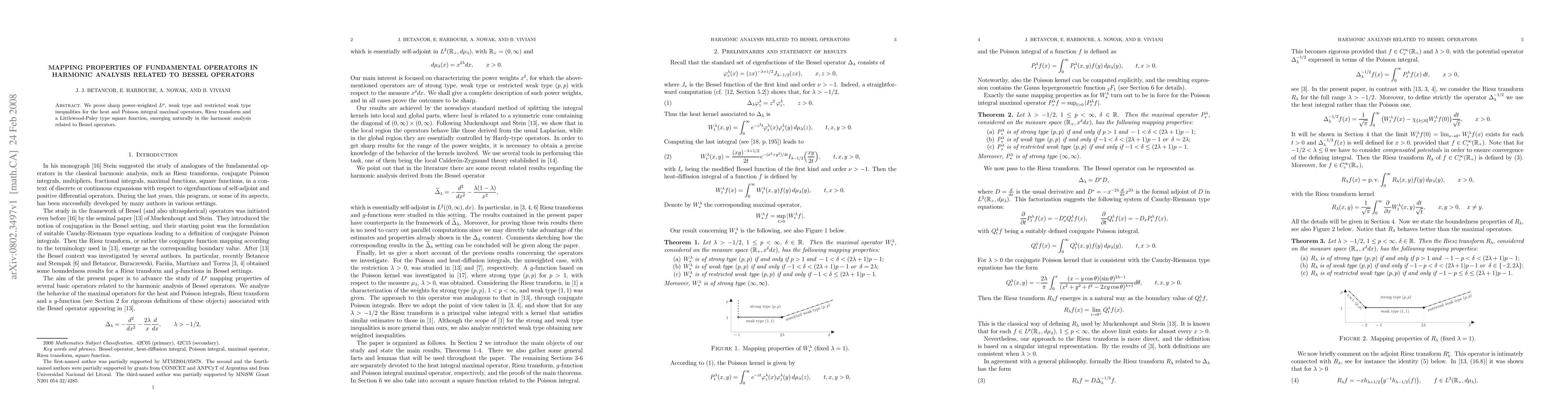 This paper establishes sharp power-weighted inequalities for several key operators in harmonic analysis connected to Bessel operators, including the heat and Poisson integral maximal operators, Riesz transform, and a Littlewood-Paley square function. These results provide a comprehensive understanding of the mapping properties of these operators.