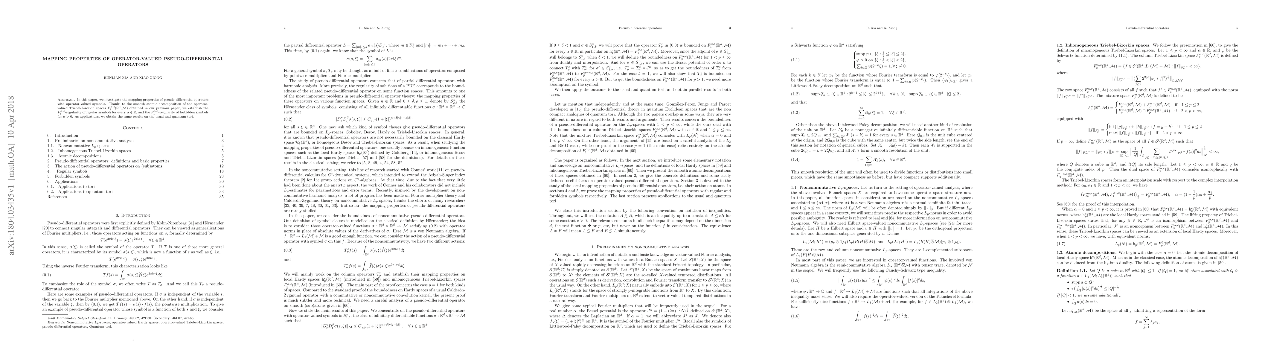 This paper explores the mapping properties of operator-valued pseudo-differential operators, establishing $F_1^{\alpha,c}$-regularity for regular and forbidden symbols. Applications include results on the usual and quantum tori.