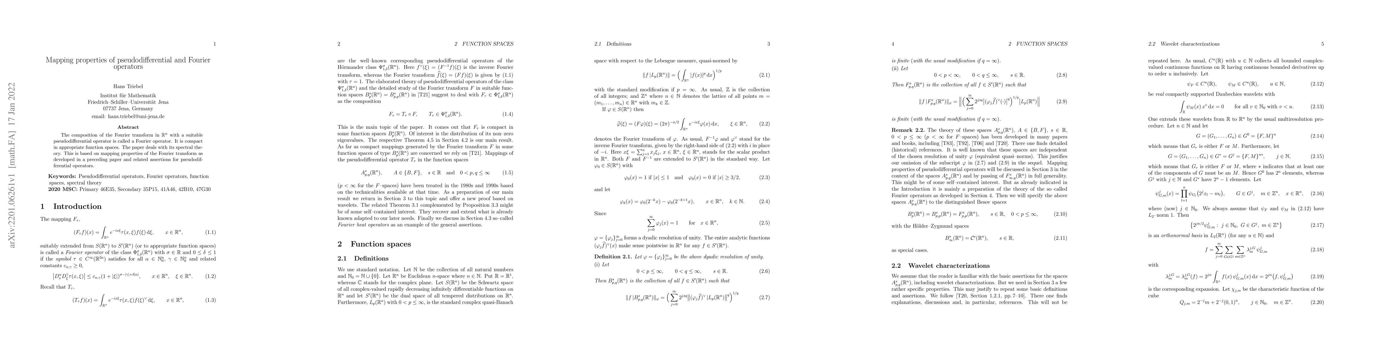This paper explores the spectral theory of Fourier operators, which are compositions of the Fourier transform with pseudodifferential operators, focusing on their compactness in function spaces and mapping properties derived from previous work on the Fourier transform and pseudodifferential operators.