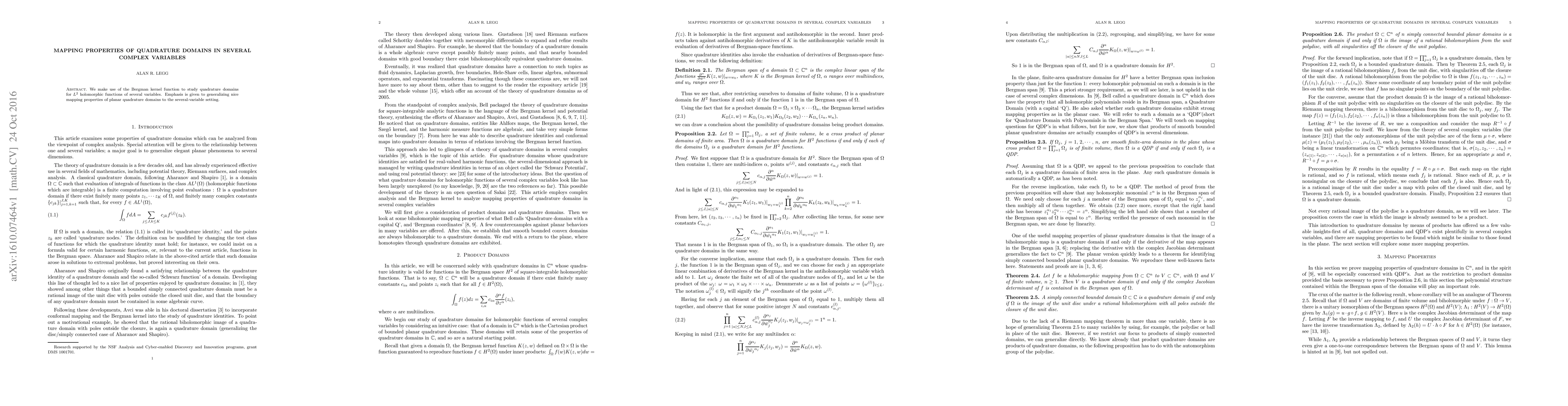 This paper utilizes the Bergman kernel function to investigate quadrature domains for square-integrable holomorphic functions in several complex variables, focusing on extending the biholomorphic mapping properties observed in planar quadrature domains to higher dimensions.