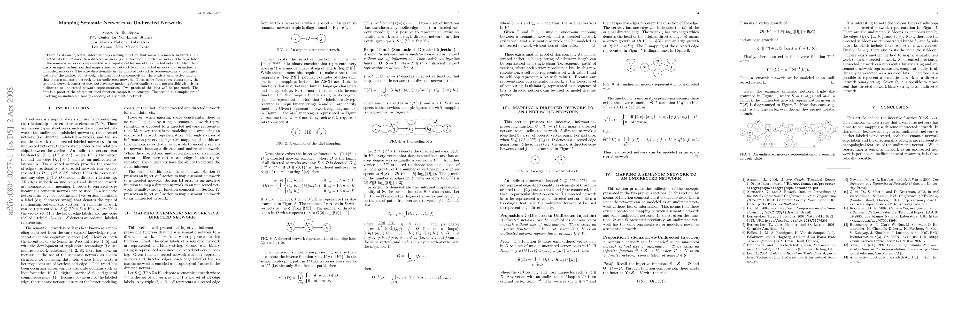 There exists an injective, information-preserving function that maps a semantic network (i.e a directed labeled network) to a directed network (i.e. a directed unlabeled network). The edge label in the semantic network is represented as a topological feature of the directed network. Also, there exists an injective function that maps a directed network to an undirected network (i.e. an undirected unlabeled network). The edge directionality in the directed network is represented as a topological feature of the undirected network. Through function composition, there exists an injective function that maps a semantic network to an undirected network. Thus, aside from space constraints, the semantic network construct does not have any modeling functionality that is not possible with either a directed or undirected network representation. Two proofs of this idea will be presented. The first is a proof of the aforementioned function composition concept. The second is a simpler proof involving an undirected binary encoding of a semantic network.