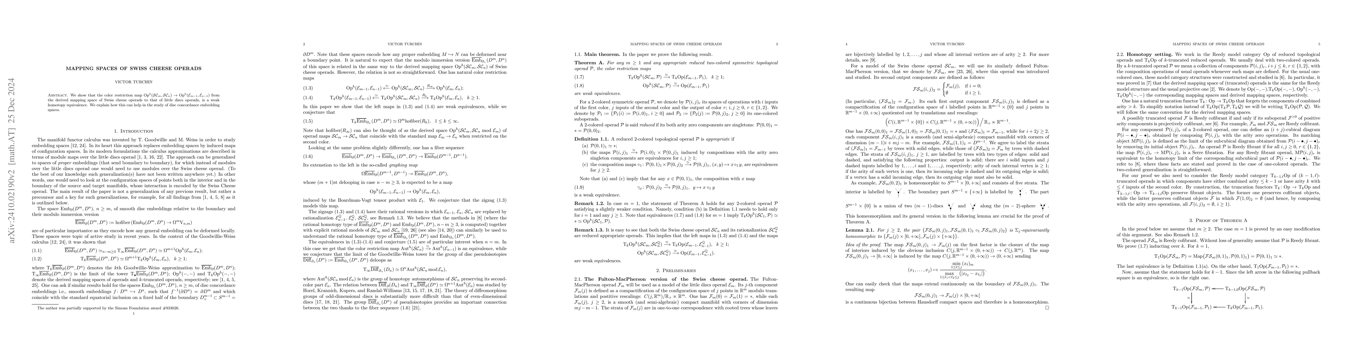 This paper demonstrates that the color restriction map between derived mapping spaces of Swiss cheese operads and little discs operads is a weak homotopy equivalence, which aids in the study of disc concordance embedding spaces.