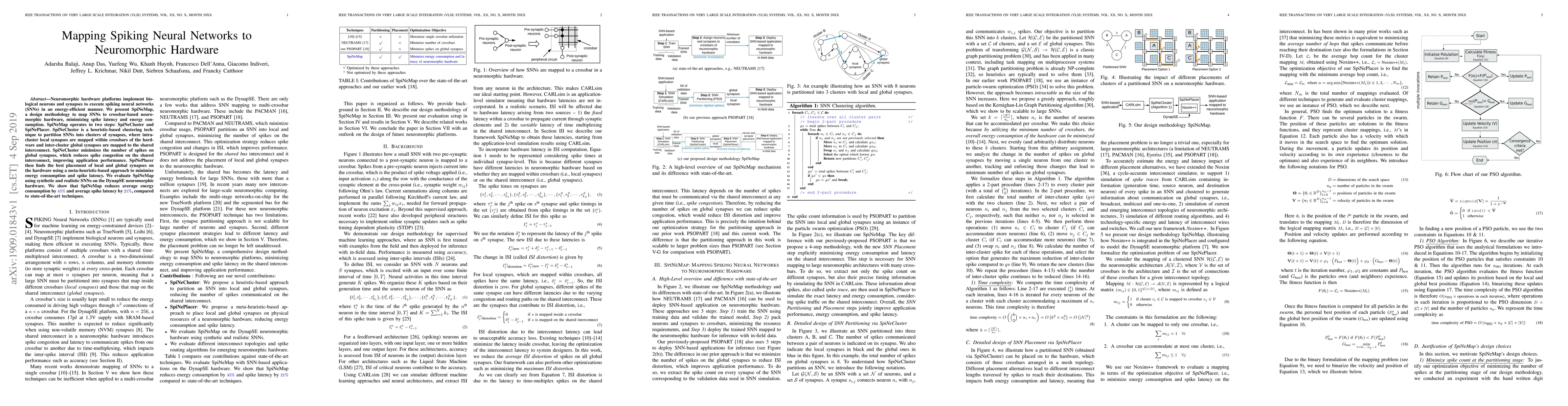 This paper introduces SpiNeMap, a methodology for mapping spiking neural networks to neuromorphic hardware, which minimizes spike latency and energy consumption through a two-step process: SpiNeCluster and SpiNePlacer. The approach significantly reduces energy use and latency, achieving 45% and 21% improvements respectively, compared to existing methods.
