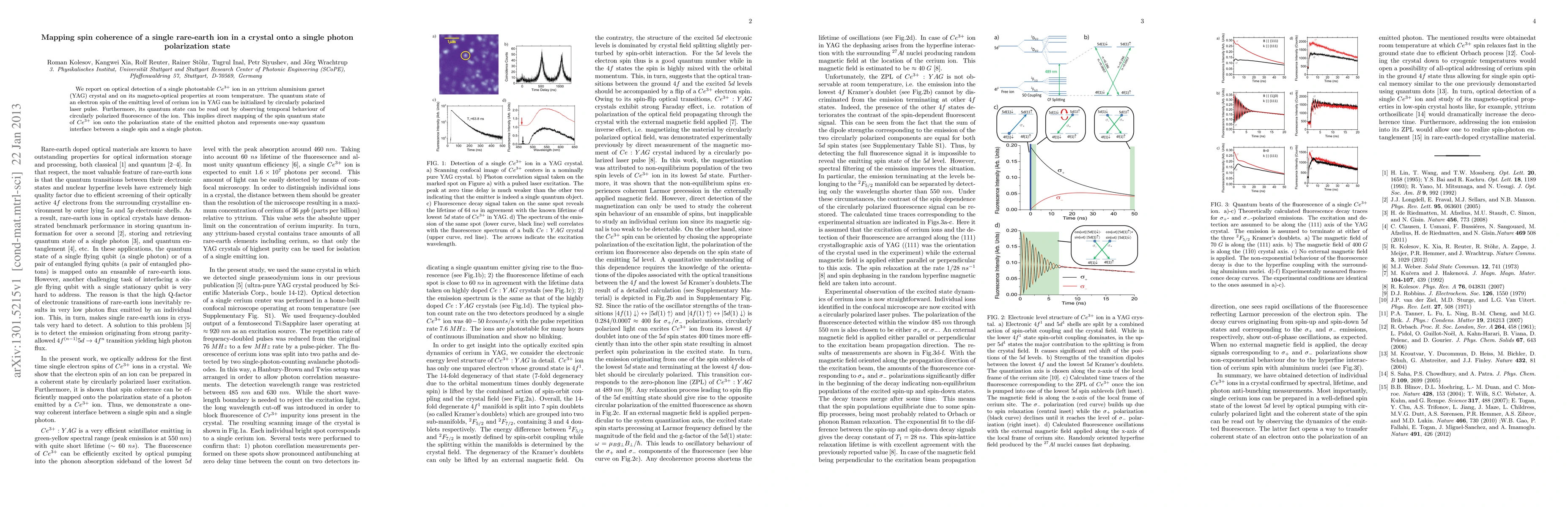 This paper reports on the optical detection and magneto-optical properties of a single Ce3+ ion in a YAG crystal at room temperature. The study demonstrates a direct mapping of the spin quantum state of Ce3+ onto the polarization state of emitted photons, establishing a one-way quantum interface between a single spin and a single photon.