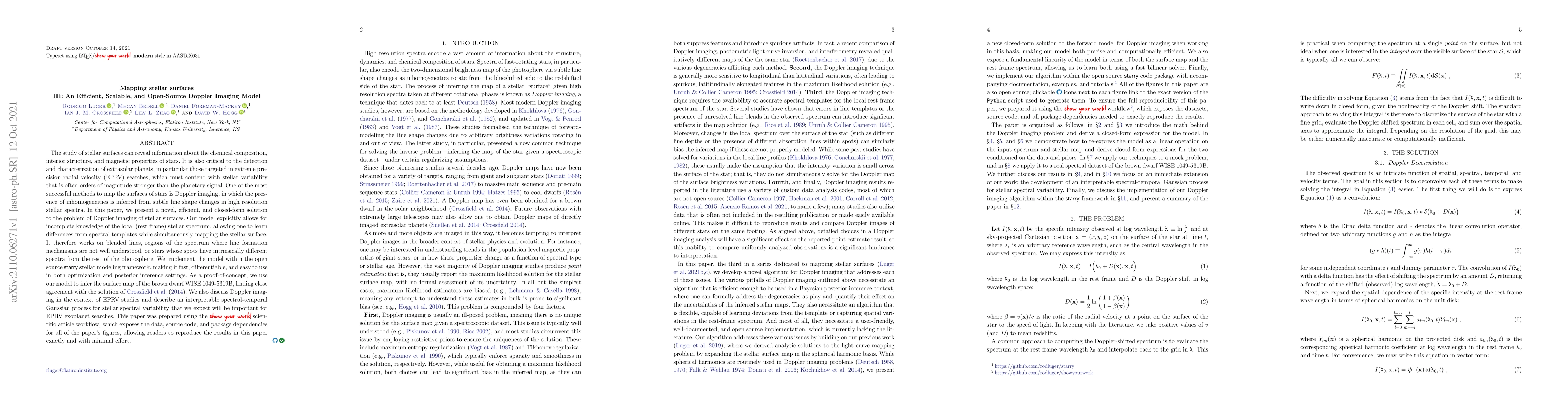 A new, efficient Doppler imaging model has been developed to map stellar surfaces, providing a solution for detecting extrasolar planets with high precision radial velocity searches.