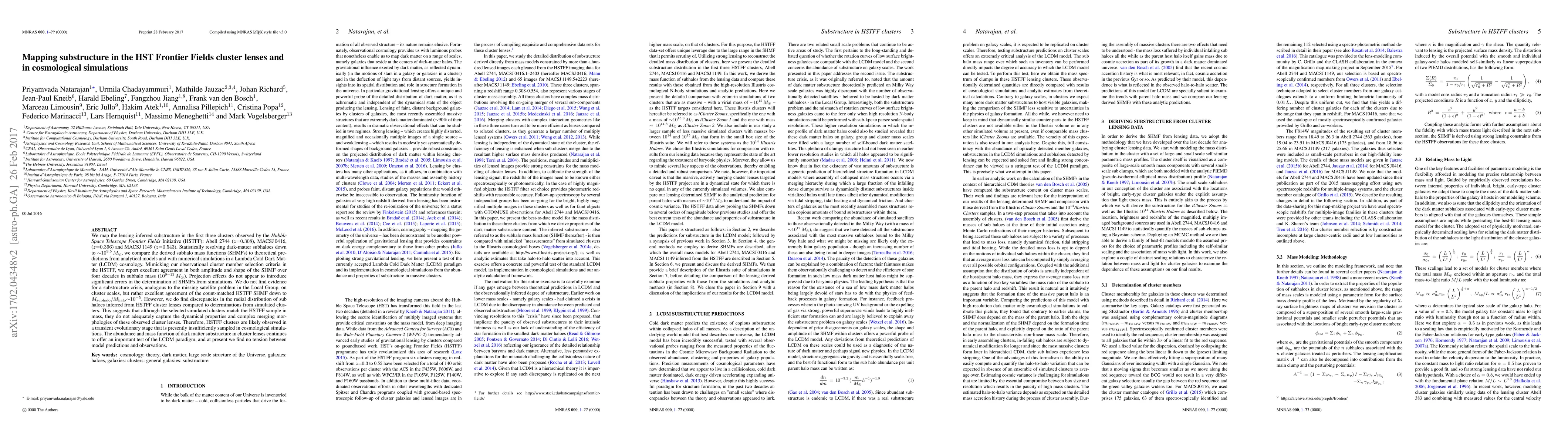 This study maps the substructure in three HST Frontier Fields clusters and compares the derived subhalo mass functions to predictions from analytical models and simulations. The results show excellent agreement in the overall shape and amplitude of the subhalo mass functions, but discrepancies in the radial distribution of subhaloes suggest simulations may not fully capture the complex dynamics of observed cluster lenses.