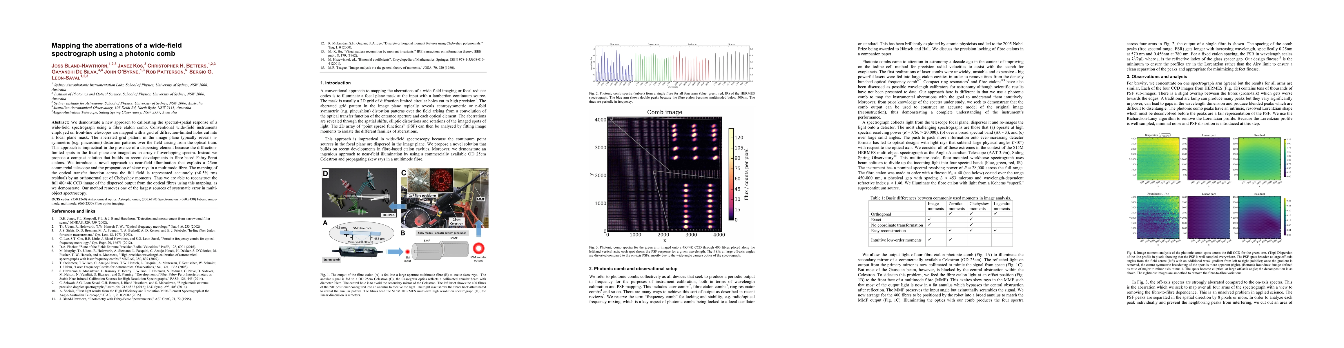 We demonstrate a new approach to calibrating the spectral-spatial response of a wide-field spectrograph using a fibre etalon comb. Conventional wide-field instruments employed on front-line telescopes are mapped with a grid of diffraction-limited holes cut into a focal plane mask. The aberrated grid pattern in the image plane typically reveals n-symmetric (e.g. pincushion) distortion patterns over the field arising from the optical train. This approach is impractical in the presence of a dispersing element because the diffraction-limited spots in the focal plane are imaged as an array of overlapping spectra. Instead we propose a compact solution that builds on recent developments in fibre-based Fabry-Perot etalons. We introduce a novel approach to near-field illumination that exploits a 25cm commercial telescope and the propagation of skew rays in a multimode fibre. The mapping of the optical transfer function across the full field is represented accurately (<0.5% rms residual) by an orthonormal set of Chebyshev moments. Thus we are able to reconstruct the full 4Kx4K CCD image of the dispersed output from the optical fibres using this mapping, as we demonstrate. Our method removes one of the largest sources of systematic error in multi-object spectroscopy.