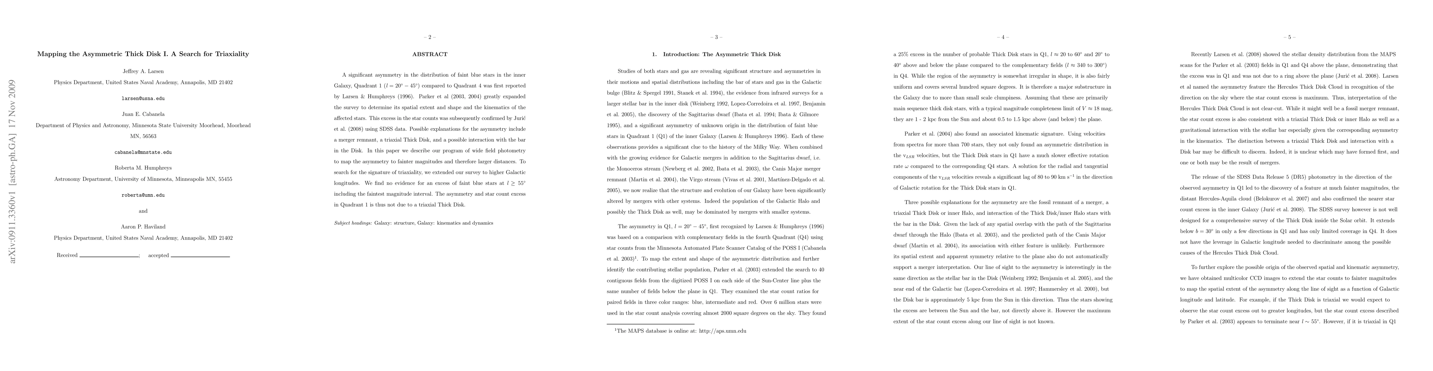 Researchers mapped the asymmetry in faint blue stars in the inner Galaxy, finding no evidence of triaxiality beyond l = 55 degrees.