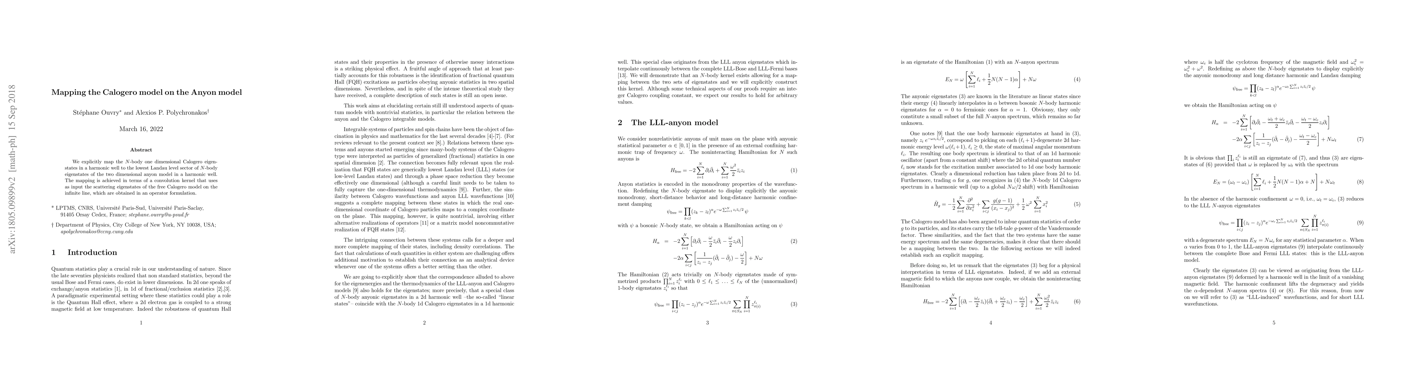We explicitly map the N-body one dimensional Calogero eigenstates in a harmonic well to the lowest Landau level sector of N-body eigenstates of the two dimensional anyon model in a harmonic well. The mapping is achieved in terms of a convolution kernel that uses as input the scattering eigenstates of the free Calogero model on the infinite line, which are obtained in an operator formulation.