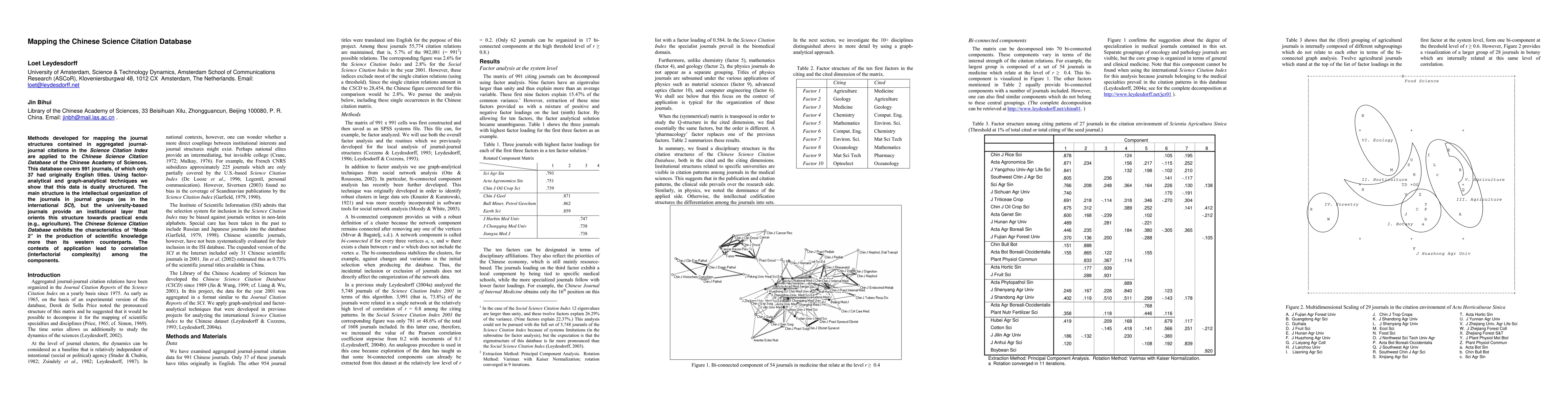 This paper applies mapping methods to the Chinese Science Citation Database to reveal its dual structure: an intellectual organization similar to the international SCI and an institutional layer focused on practical applications like agriculture, reflecting Mode 2 scientific knowledge production. The study uses factor-analytical and graph-analytical techniques to highlight interfactorial complexity driven by application contexts.