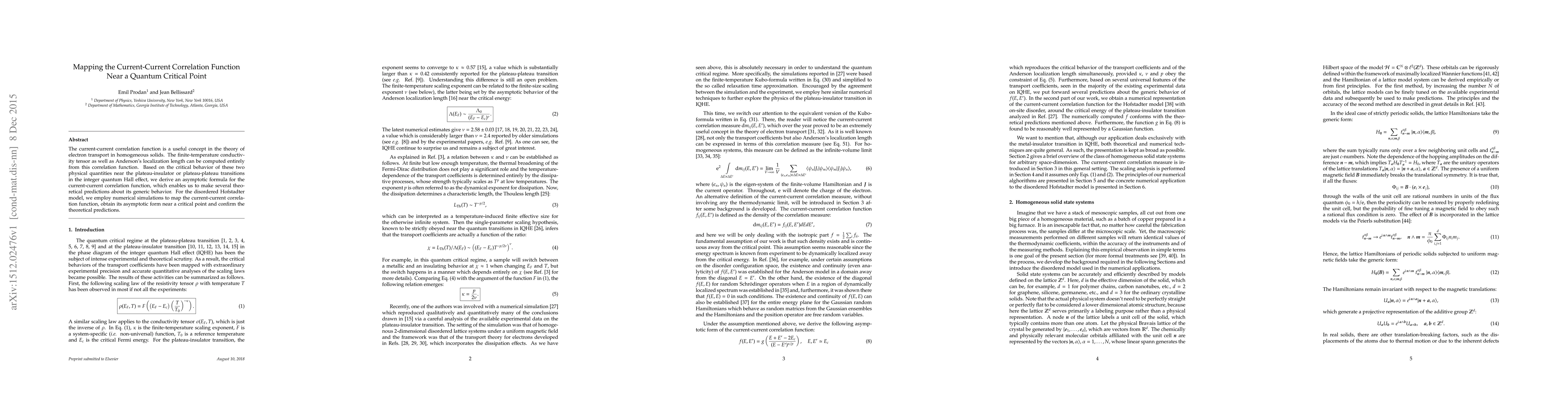 This paper derives an asymptotic formula for the current-current correlation function near a quantum critical point, enabling theoretical predictions about its behavior. Numerical simulations of the disordered Hofstadter model confirm these predictions and map the correlation function near the critical point.