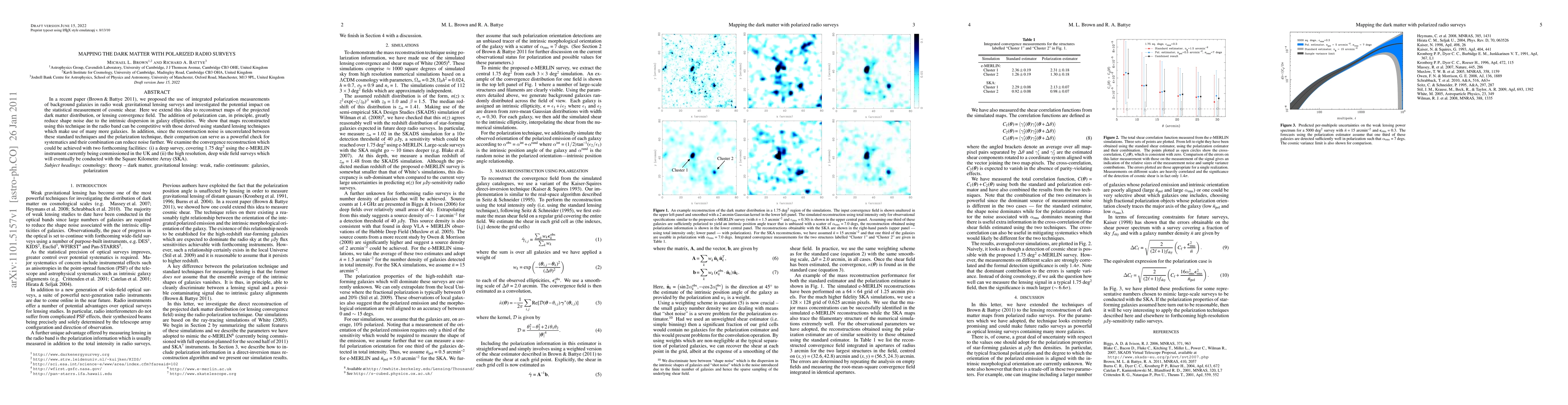 In a recent paper (Brown & Battye 2011), we proposed the use of integrated polarization measurements of background galaxies in radio weak gravitational lensing surveys and investigated the potential impact on the statistical measurement of cosmic shear. Here we extend this idea to reconstruct maps of the projected dark matter distribution, or lensing convergence field. The addition of polarization can, in principle, greatly reduce shape noise due to the intrinsic dispersion in galaxy ellipticities. We show that maps reconstructed using this technique in the radio band can be competitive with those derived using standard lensing techniques which make use of many more galaxies. In addition, since the reconstruction noise is uncorrelated between these standard techniques and the polarization technique, their comparison can serve as a powerful check for systematics and their combination can reduce noise further. We examine the convergence reconstruction which could be achieved with two forthcoming facilities: (i) a deep survey, covering 1.75 square degrees using the e-MERLIN instrument currently being commissioned in the UK and (ii) the high resolution, deep wide field surveys which will eventually be conducted with the Square Kilometre Array.